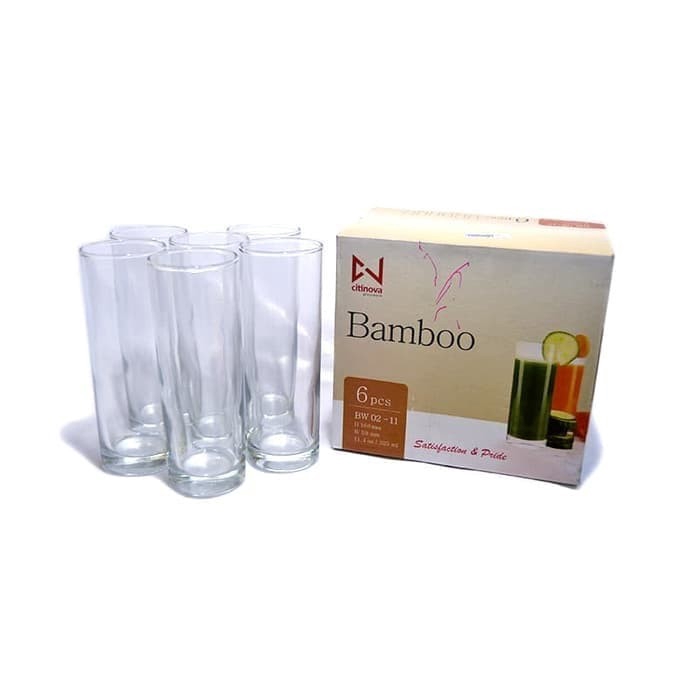 Gelas Minum Kaca Bamboo Citinova 6 pcs