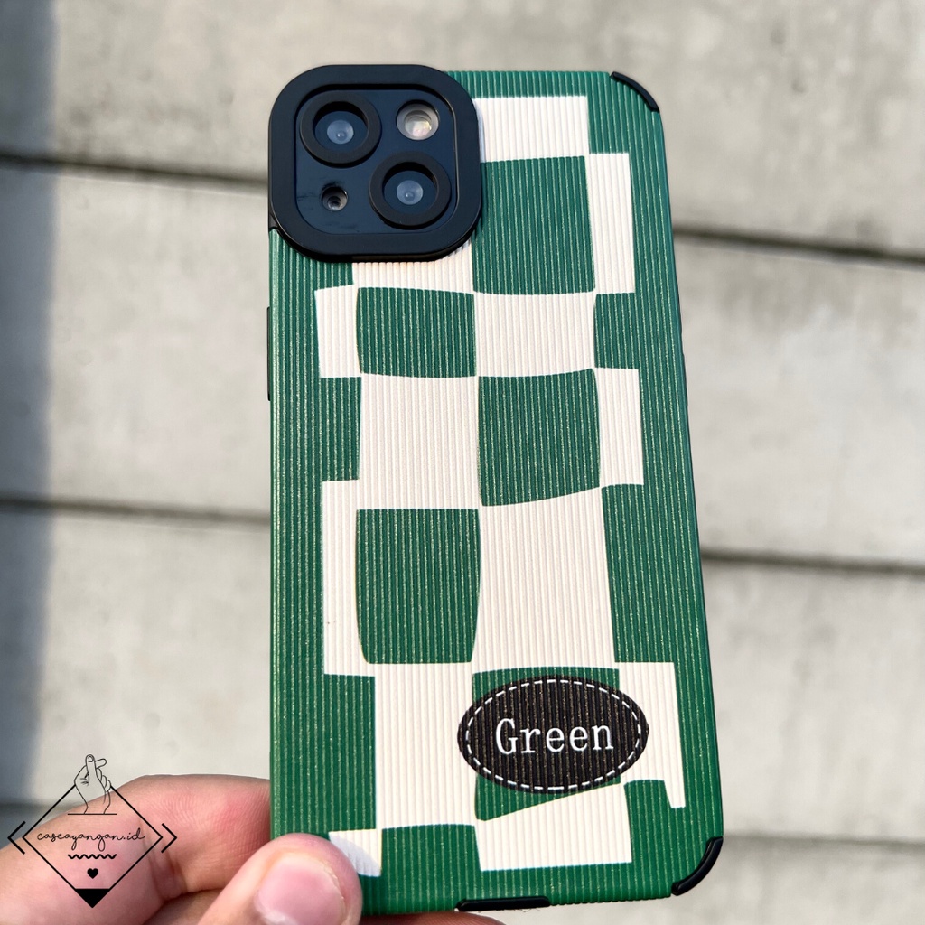 Green Square Case for Iphone (7-14) 7 8 SE PLUS X XS XR 11 12 13 14 PRO MAX MINI Casing Lucu Simple Hijau
