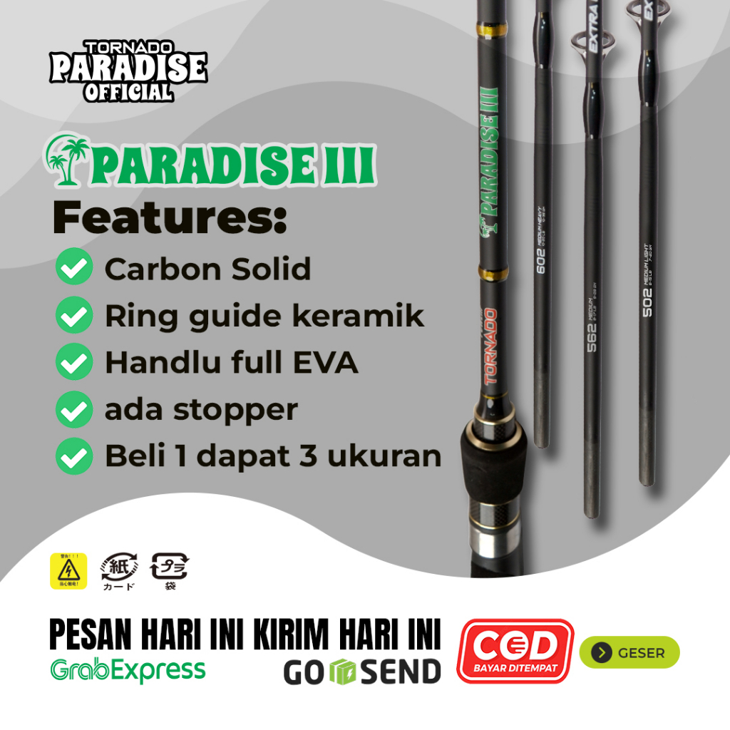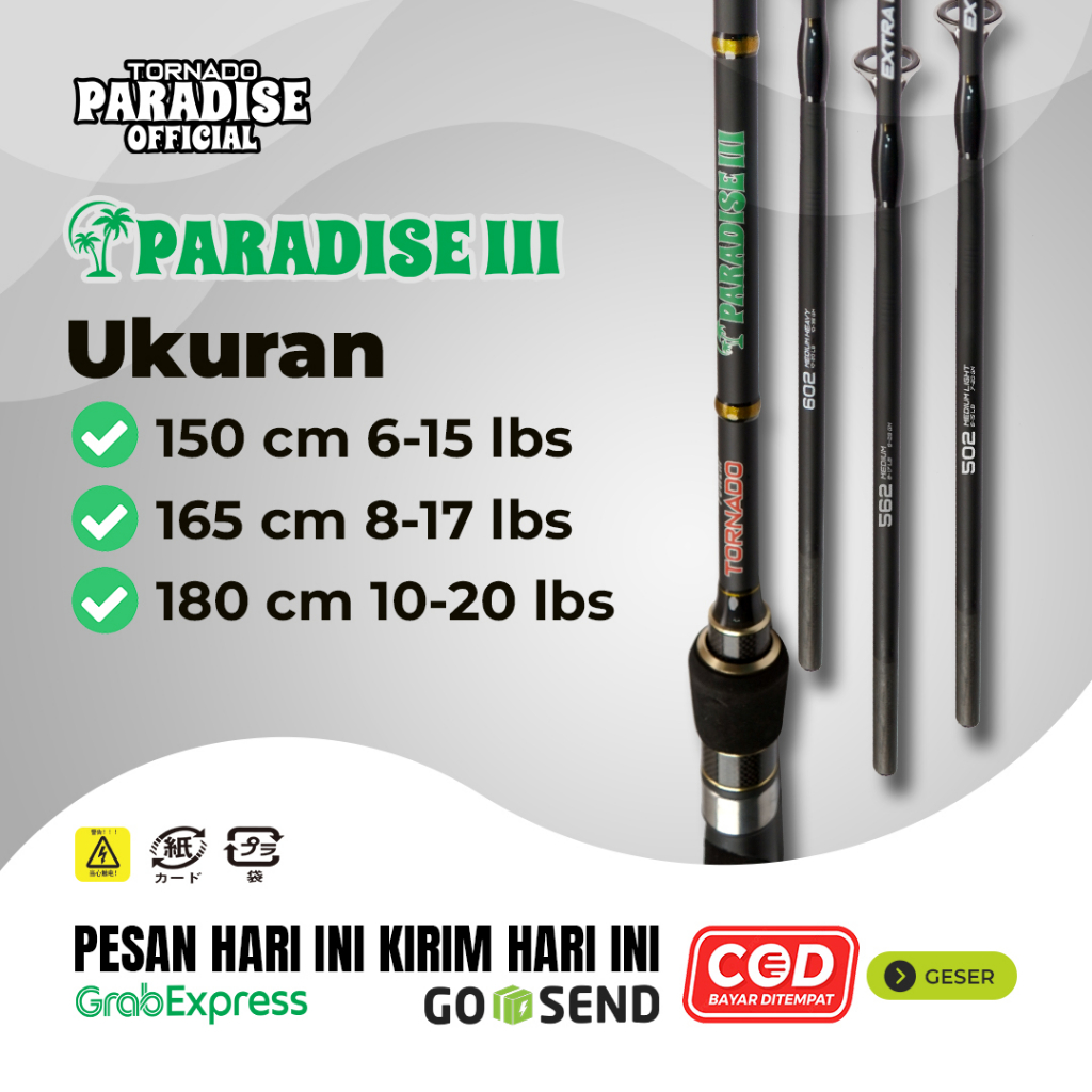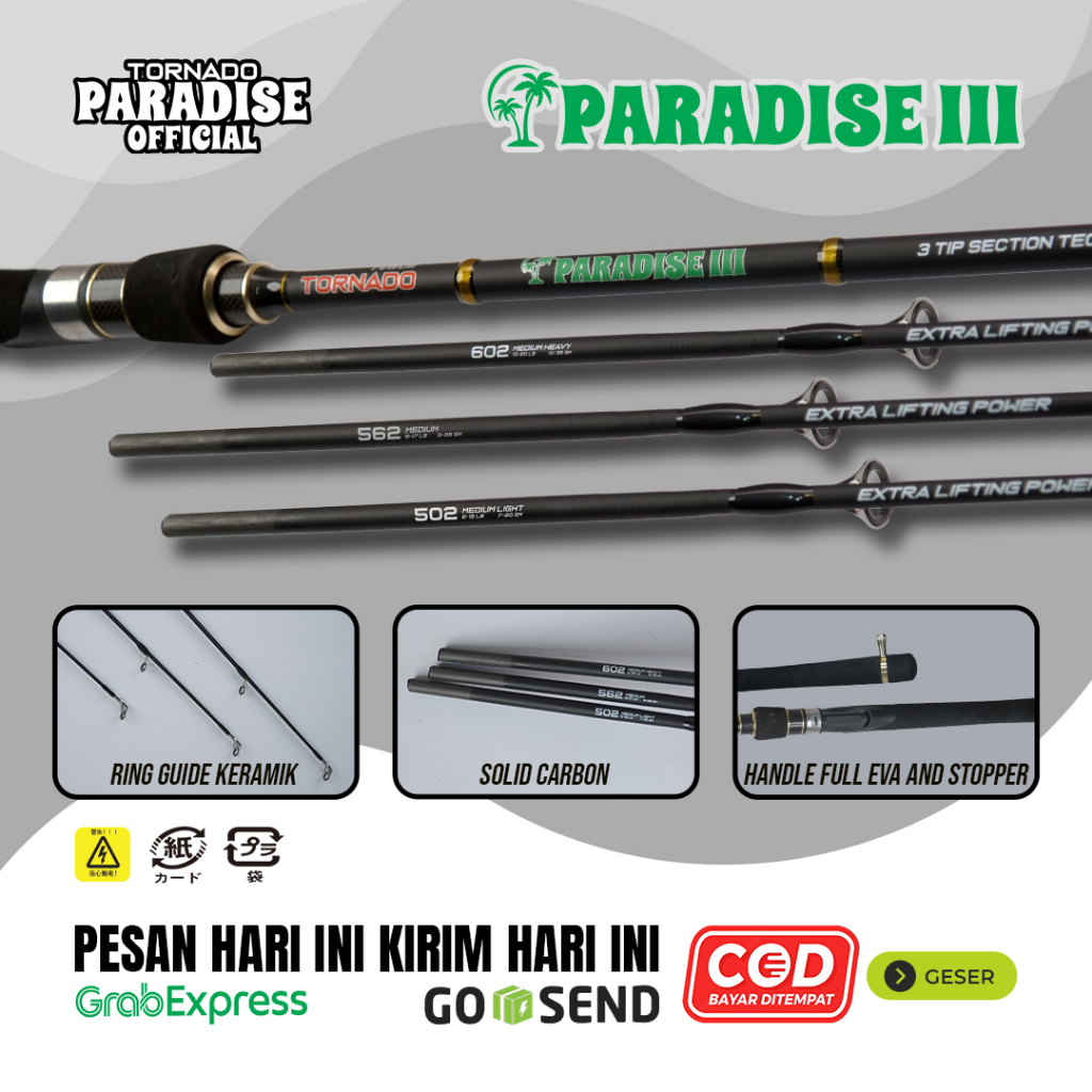Joran Paradise III / Joran Paradise 3 / Carbon Solid Ring Guide Keramik Handle Uk. 150cm 165cm 180cm / Joran Tornado Paradise