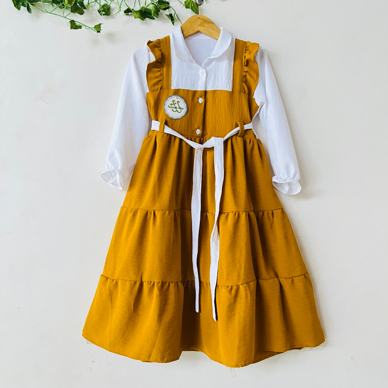 Gamis Anak 2 3 4 5 6 tahun crinkle kringkel kunyit abu canda tumpuk rempel ruffle Gamis Morena Fatonah Shop purwodadi grobogan ( Gamis Morena )