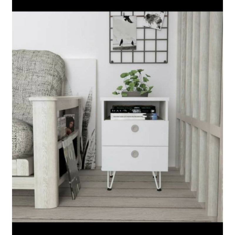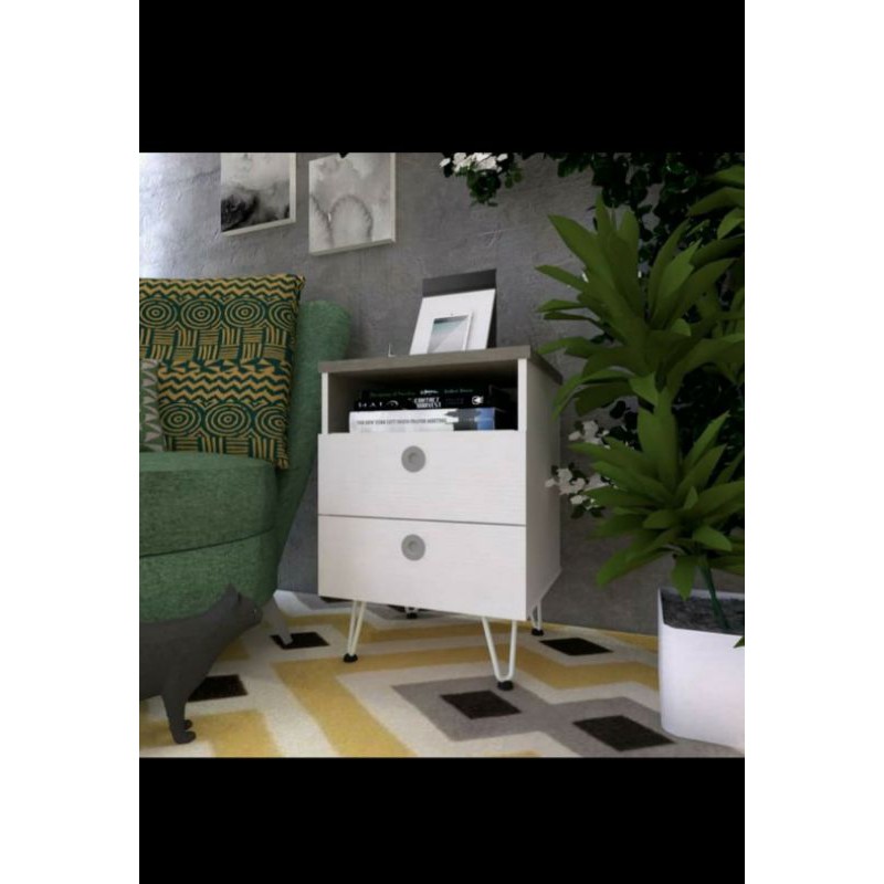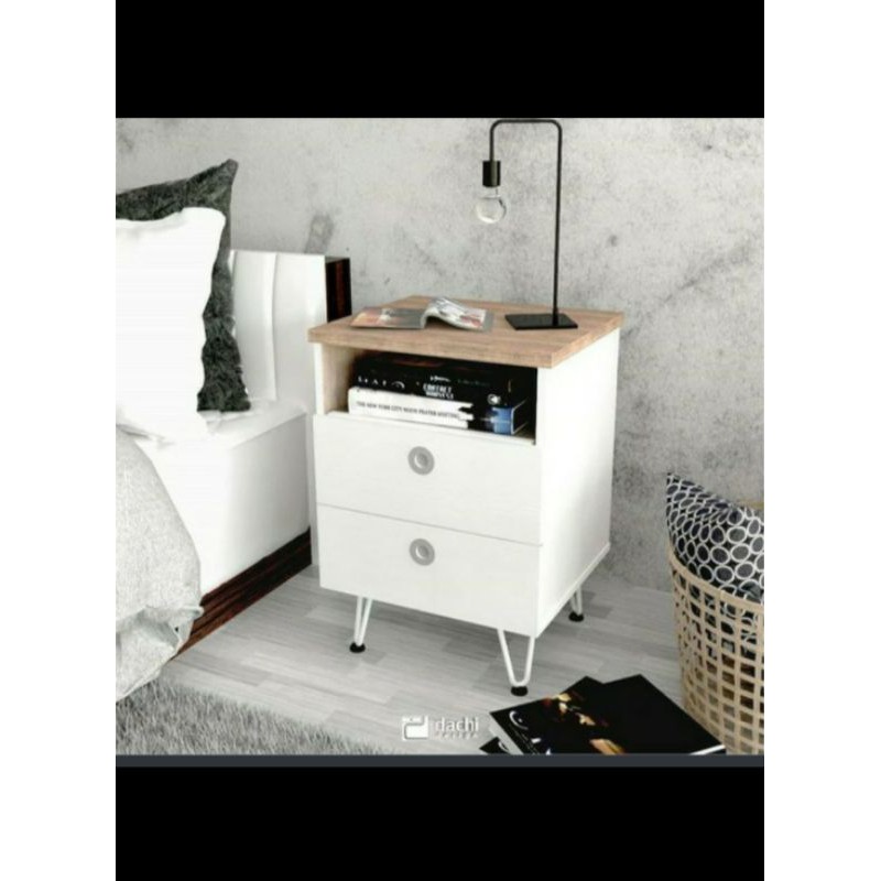 Dachi Hiro 2 Drawer ST Meja Sudut Nakas Kaki Besi Tebal 2 LACI
