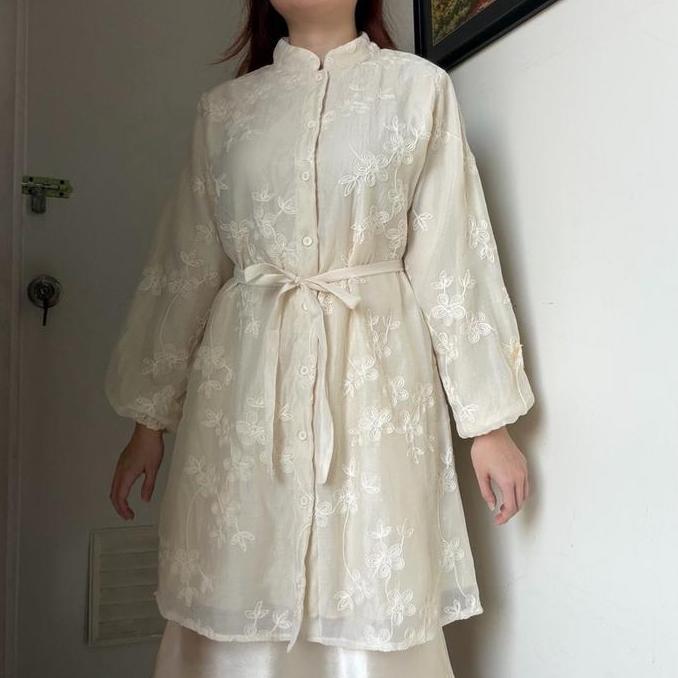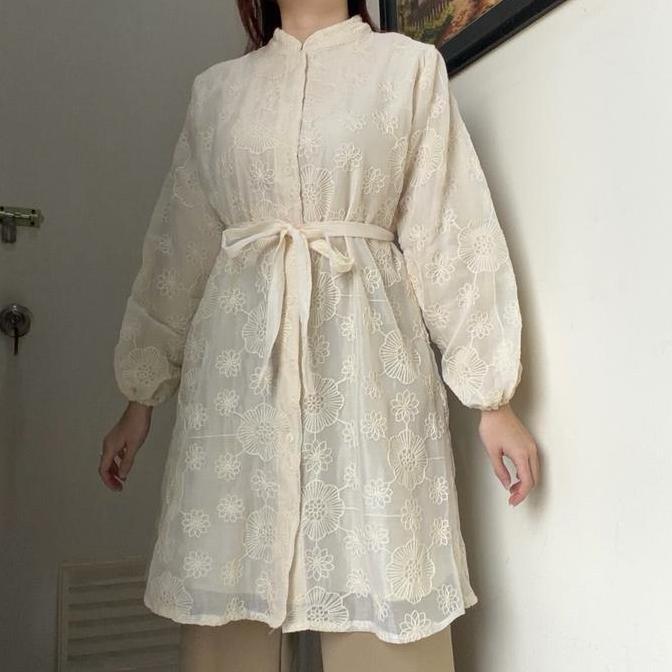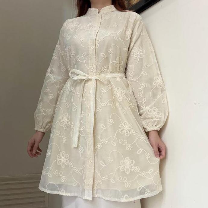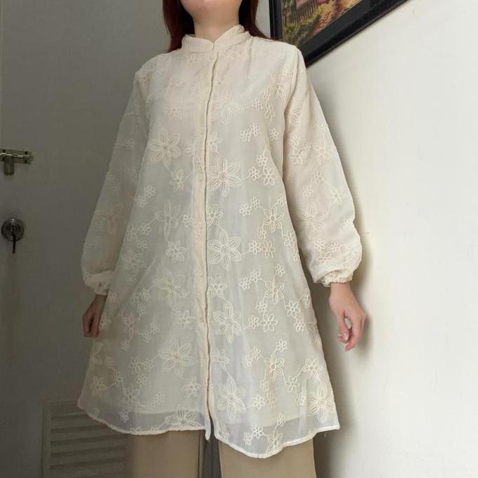 Zahra TUNIK TOP atasan blouse kemeja wanita katun organdi bordir kerja kondangan lebaran hari raya pesta wisuda wedding korean style by biel the label GJ