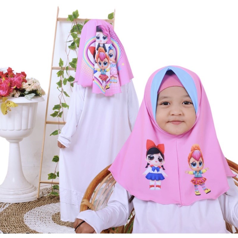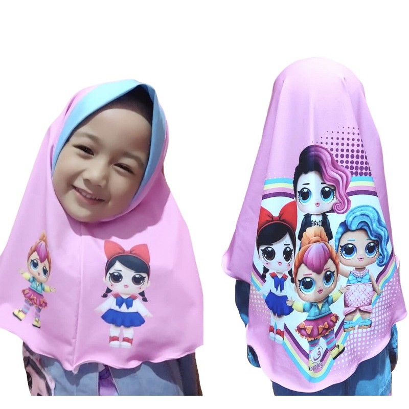 HIJAB INSTANT LOL 3D PINK / HIJAB ANAK KARAKTER LUCU / KERUDUNG ANAK KARAKTER