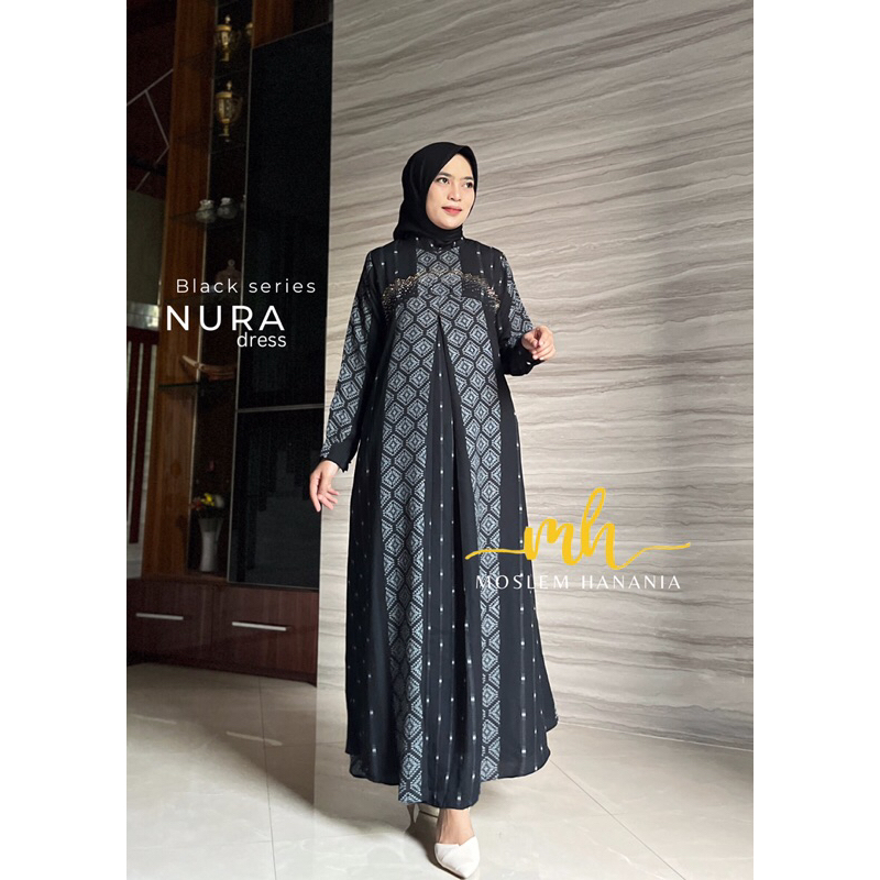 Gamis Abaya Hitam Motif Jetblack Swaroski Mewah Dress Wanita Fashion Terlaris Nura dress by Moslem Hanania
