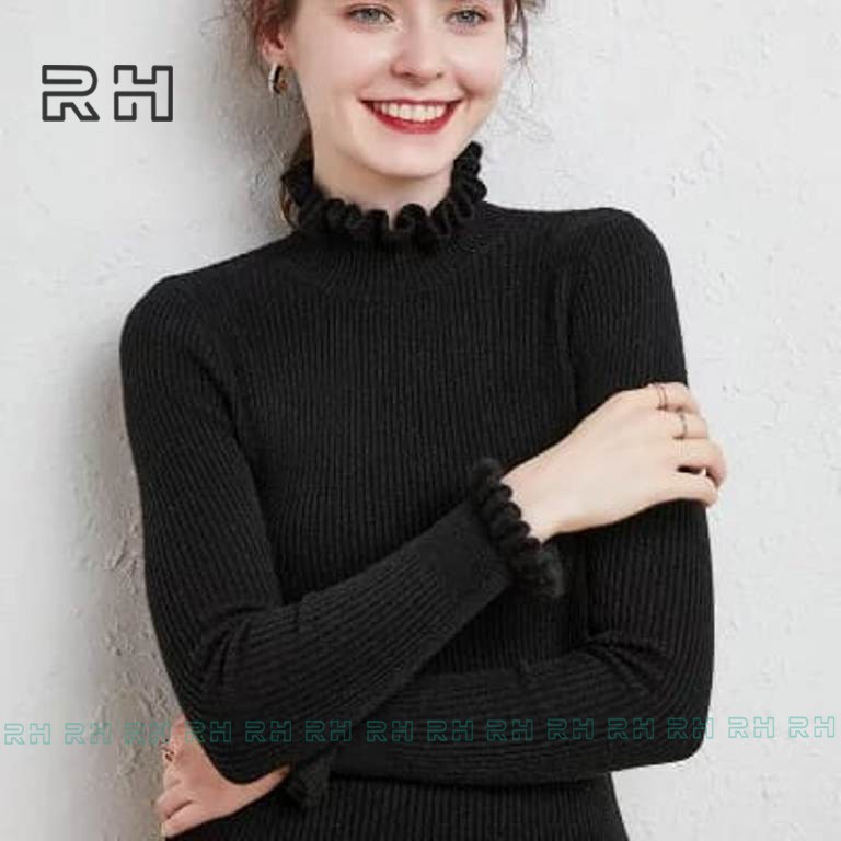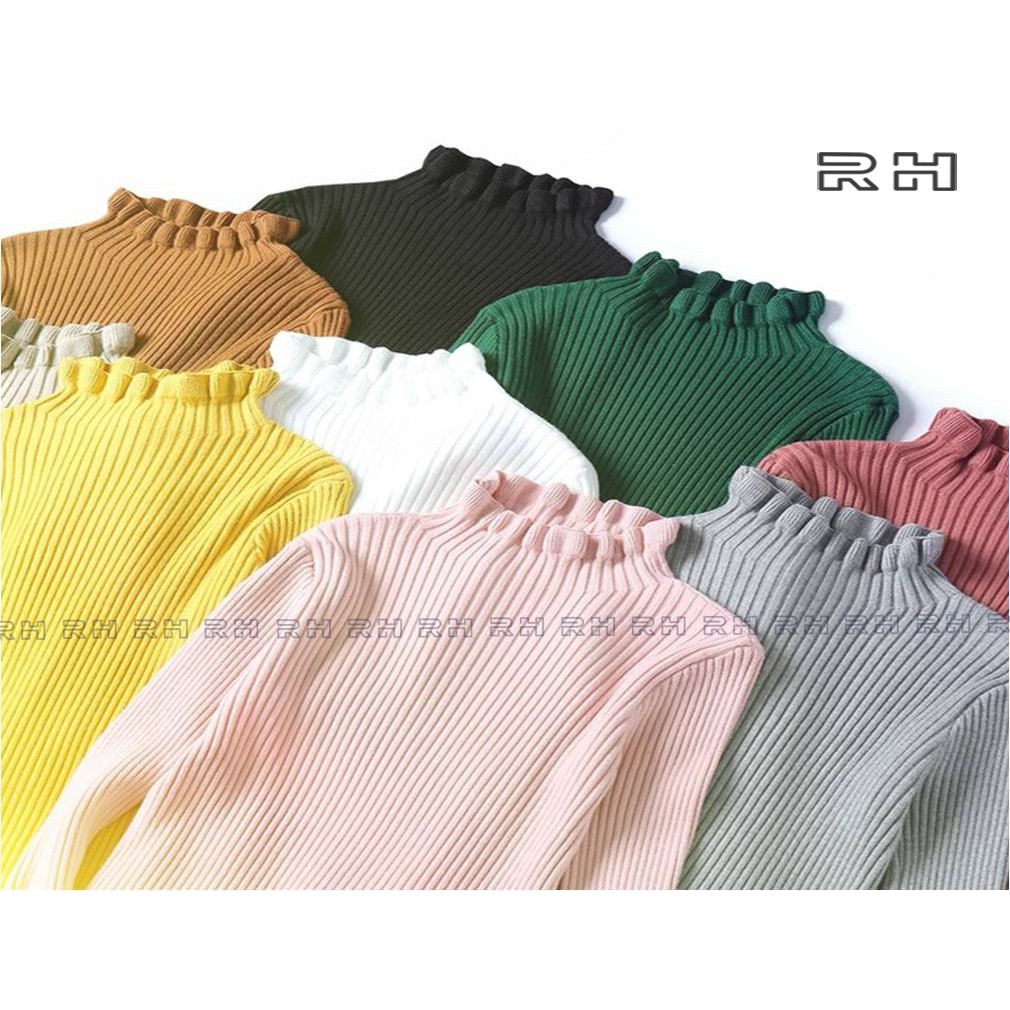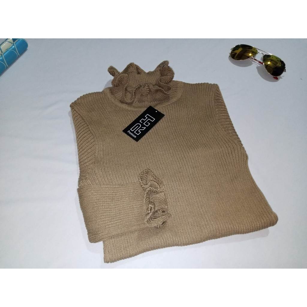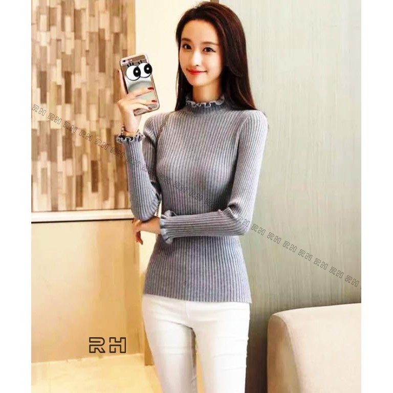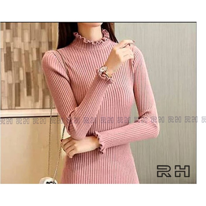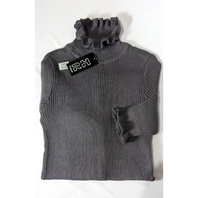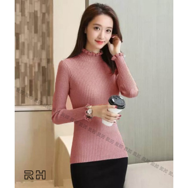 ORIGINAL RHcollections baju rajut kerah tinggi kriwil turtleneck wanita salur sweater wanita