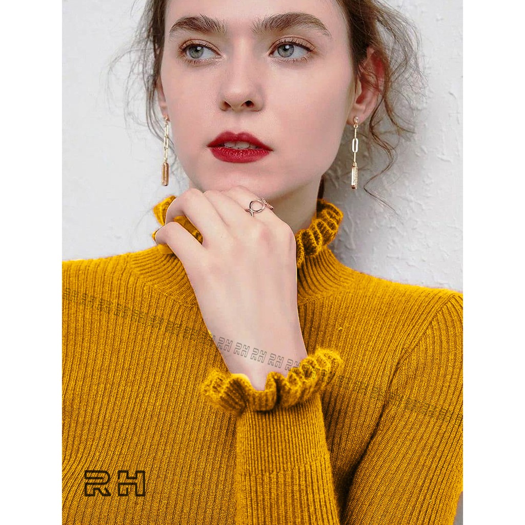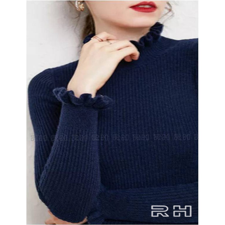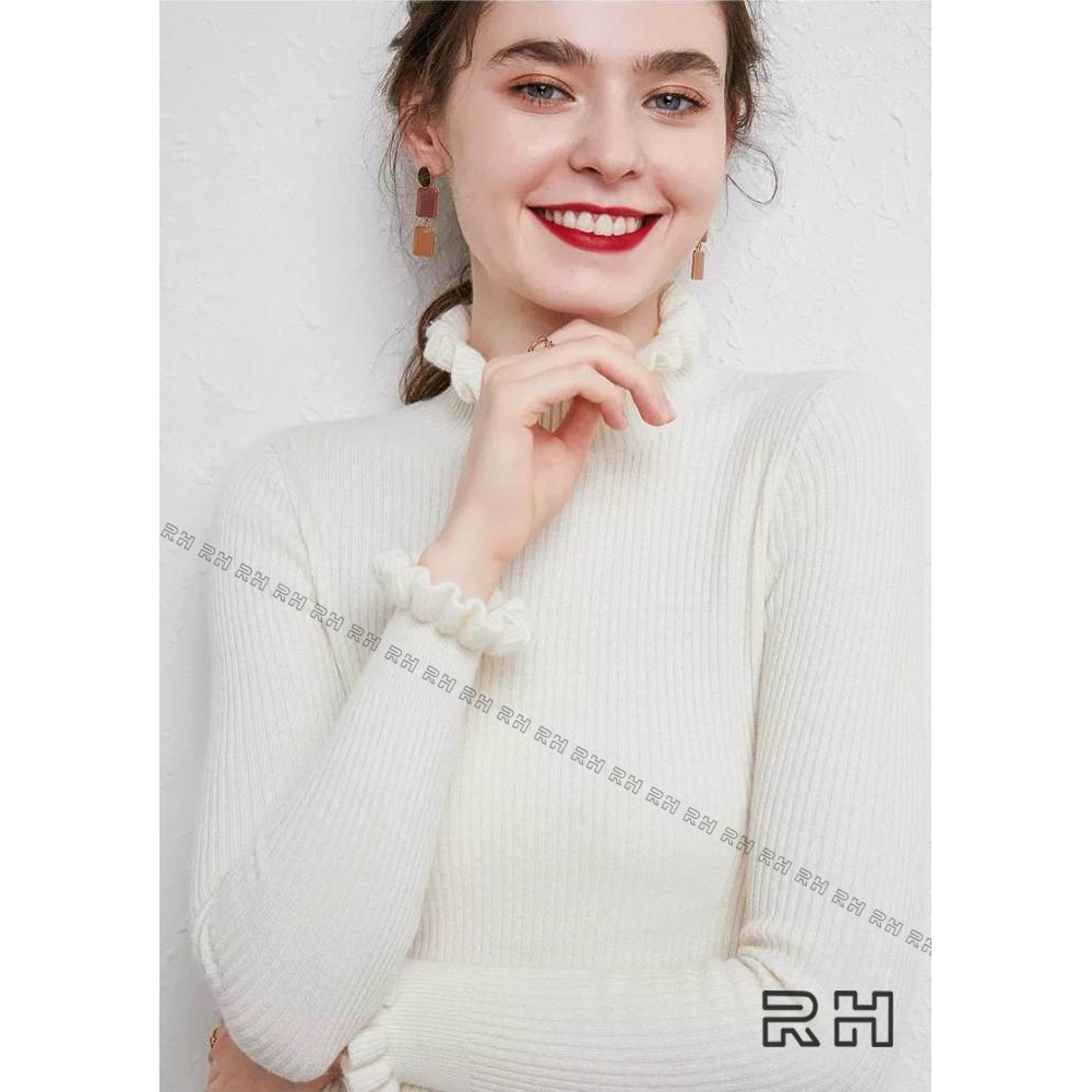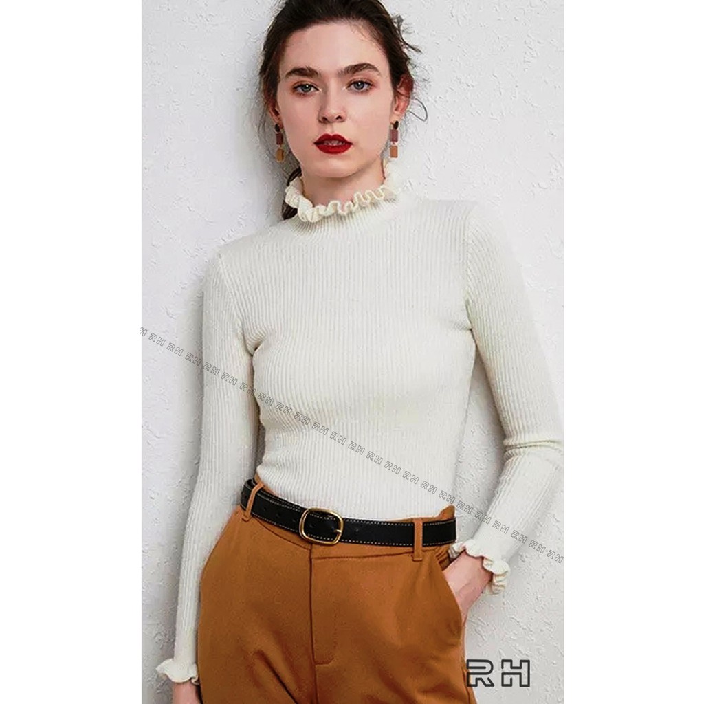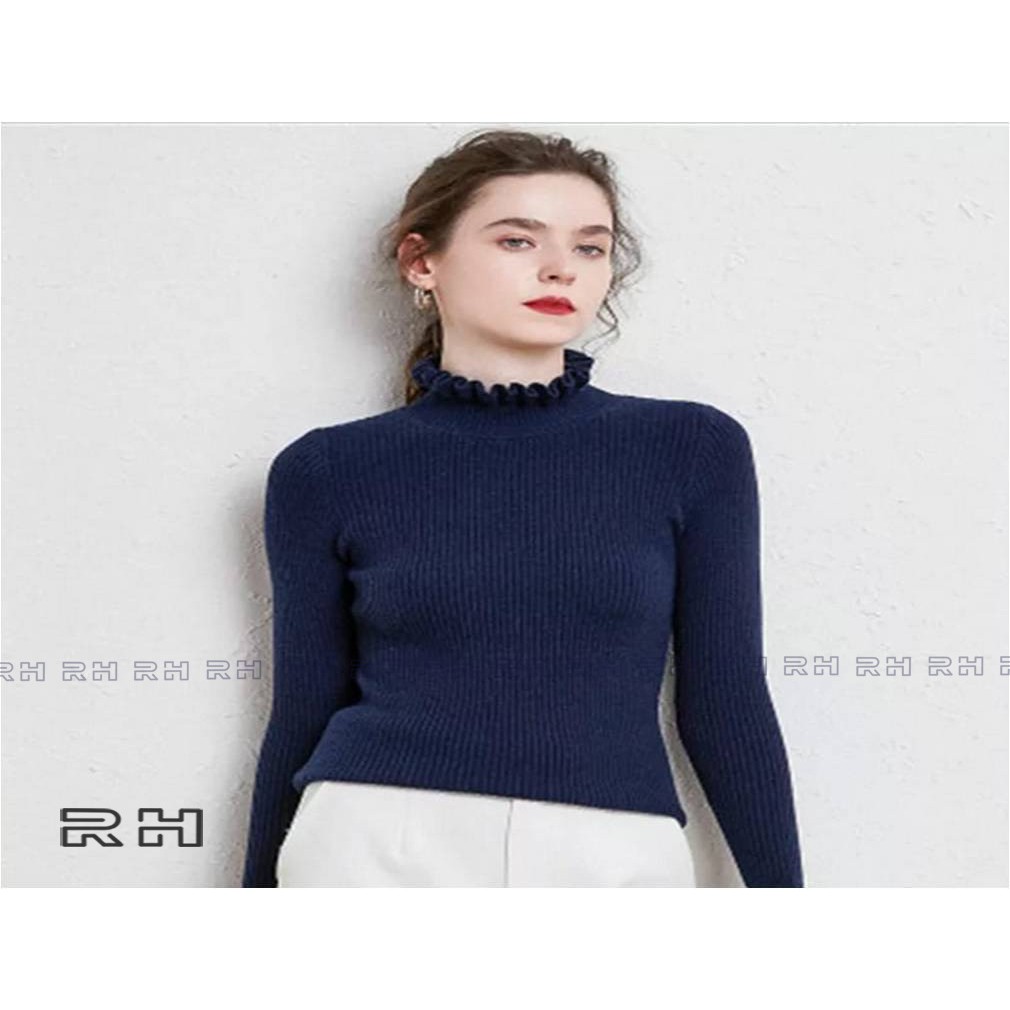 ORIGINAL RHcollections baju rajut kerah tinggi kriwil turtleneck wanita salur sweater wanita