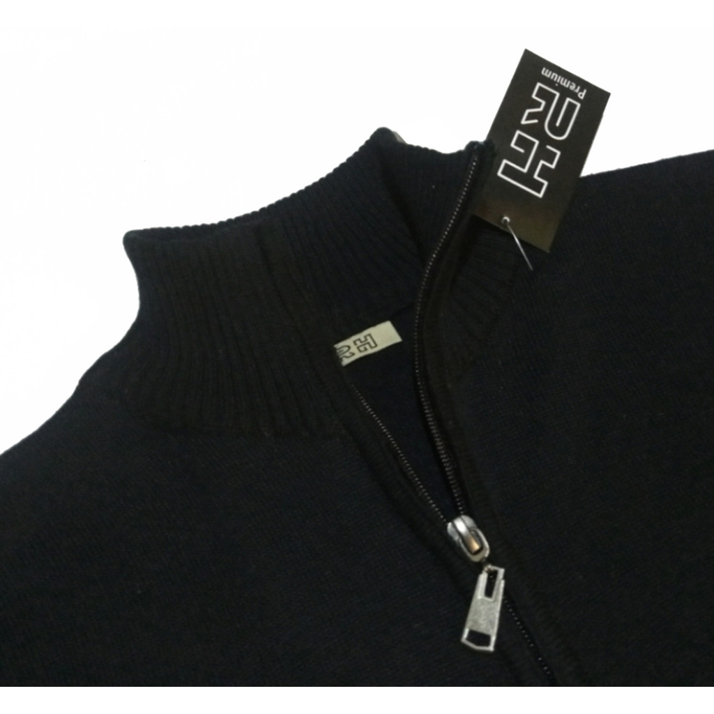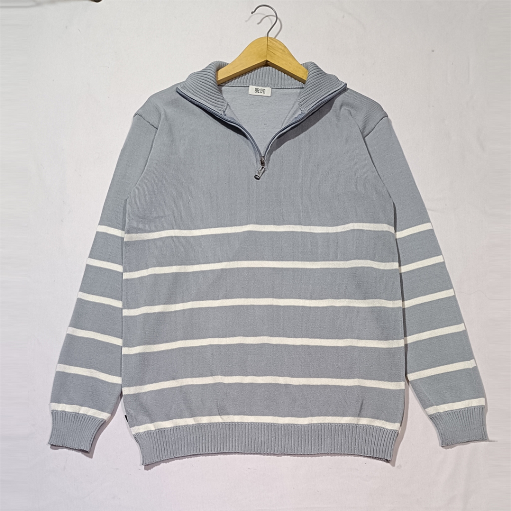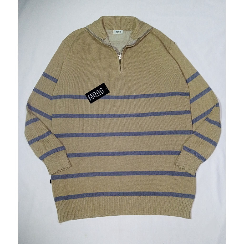 RH - BAJU RAJUT SWEATER ZIPPER RESLETING KERAH TINGGI BELANG GARIS KECIL RAJUTAN TANGAN PANJANG TERLARIS