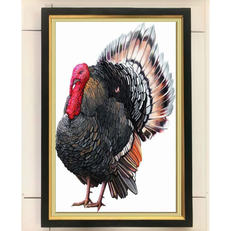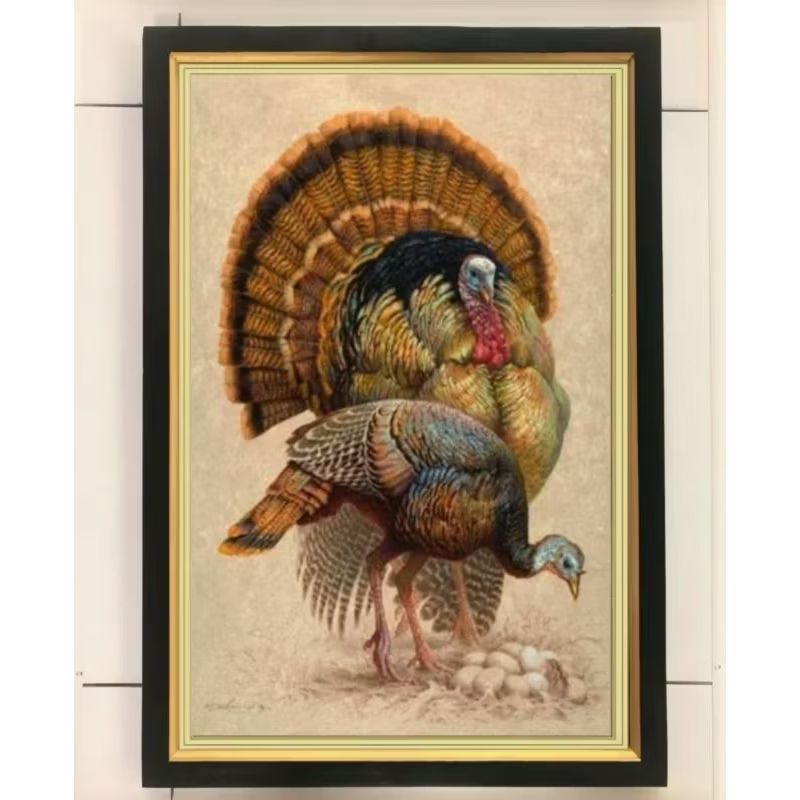 hiasan dinding lukisan cetak ayam kalkun hias plus bingkai ukuran 65×45