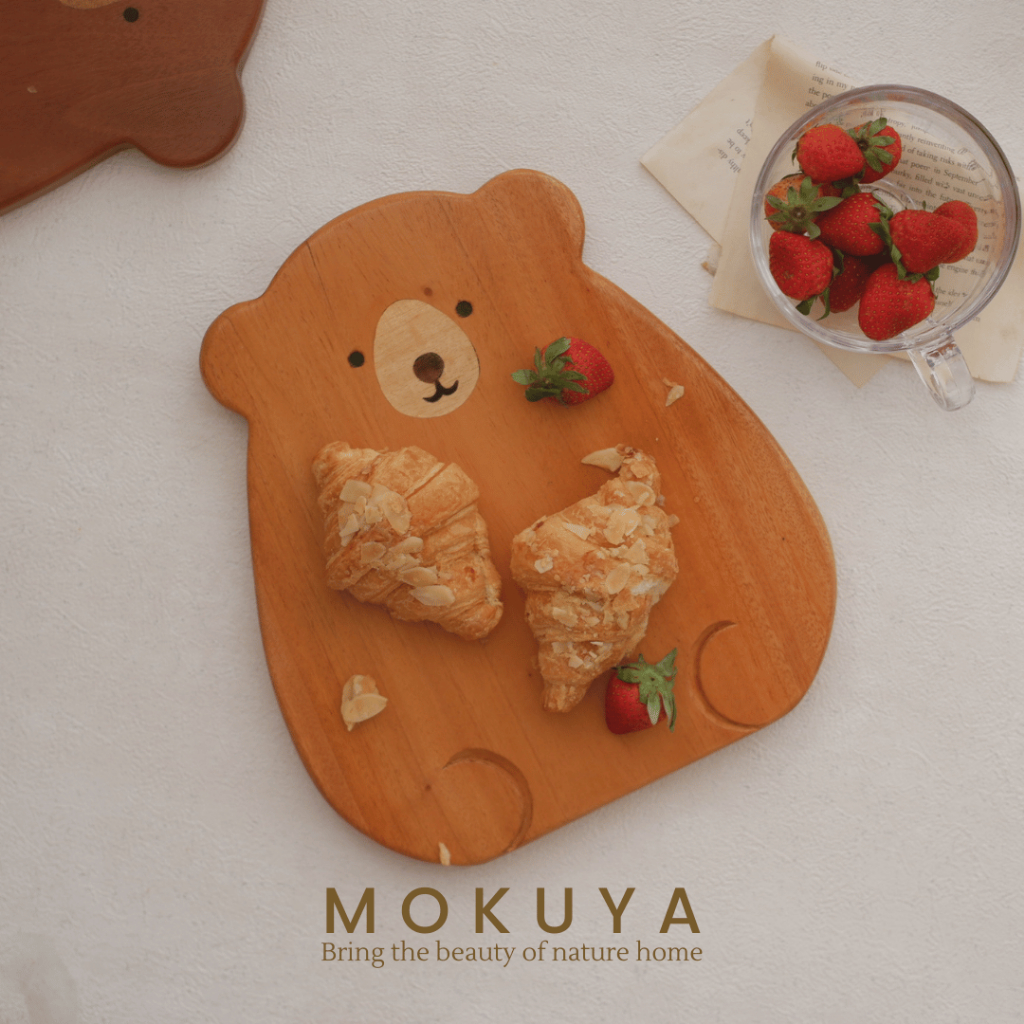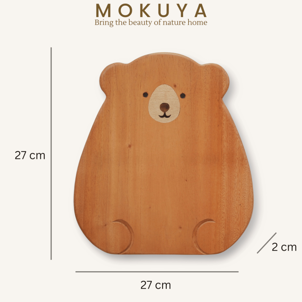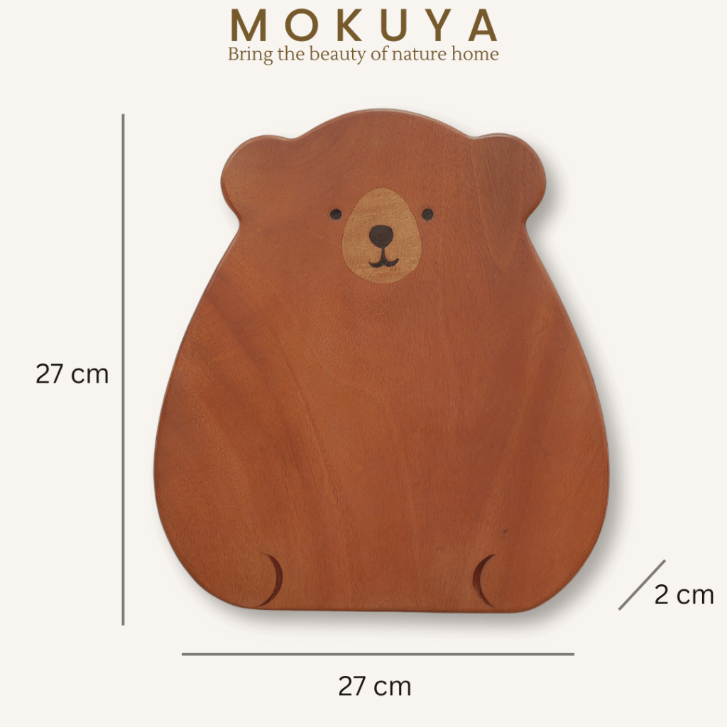 GOM - Piring Kayu Estetik Beruang | Bear Wooden Plate Lucu untuk Dessert Cemilan Dapur Anak Flatlay