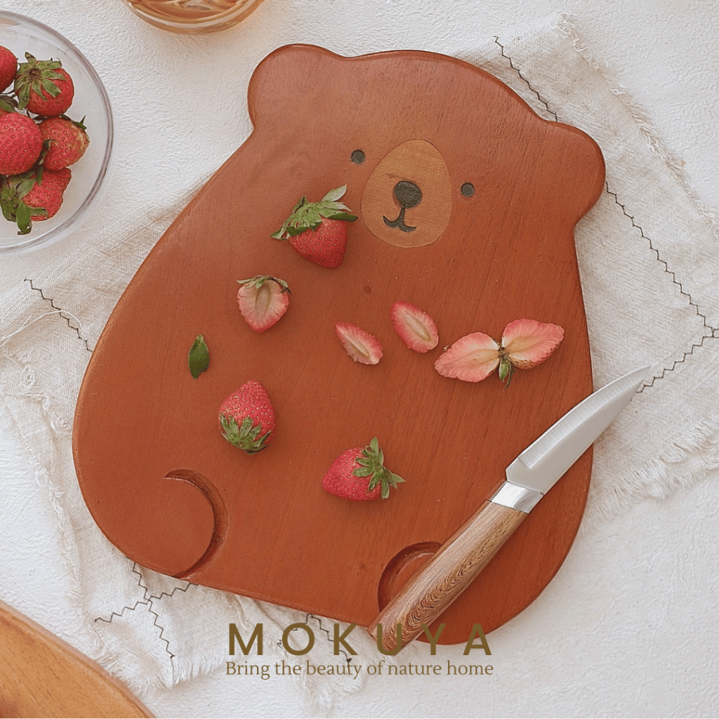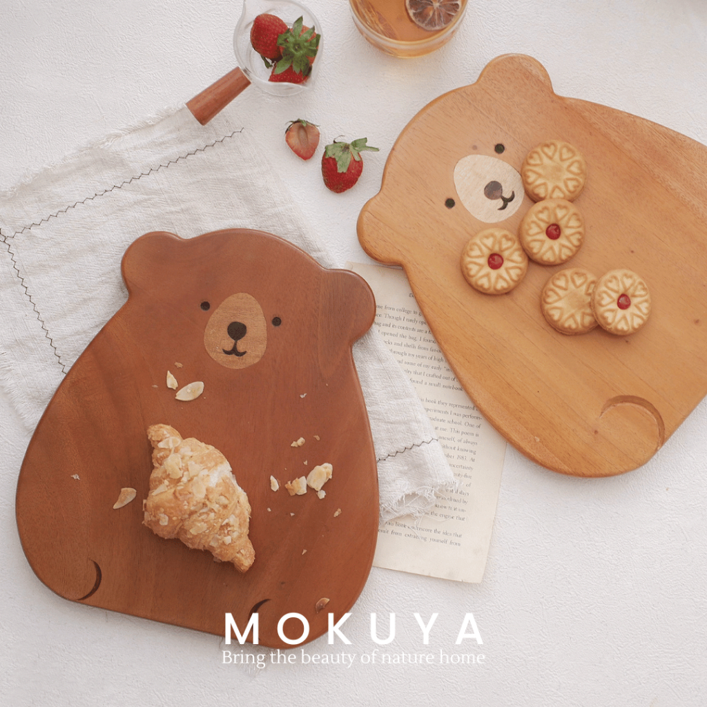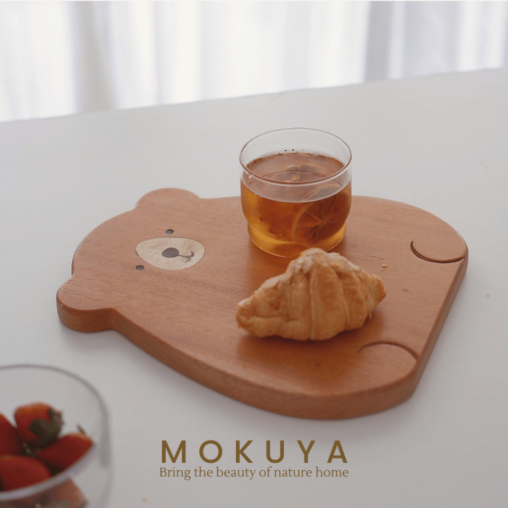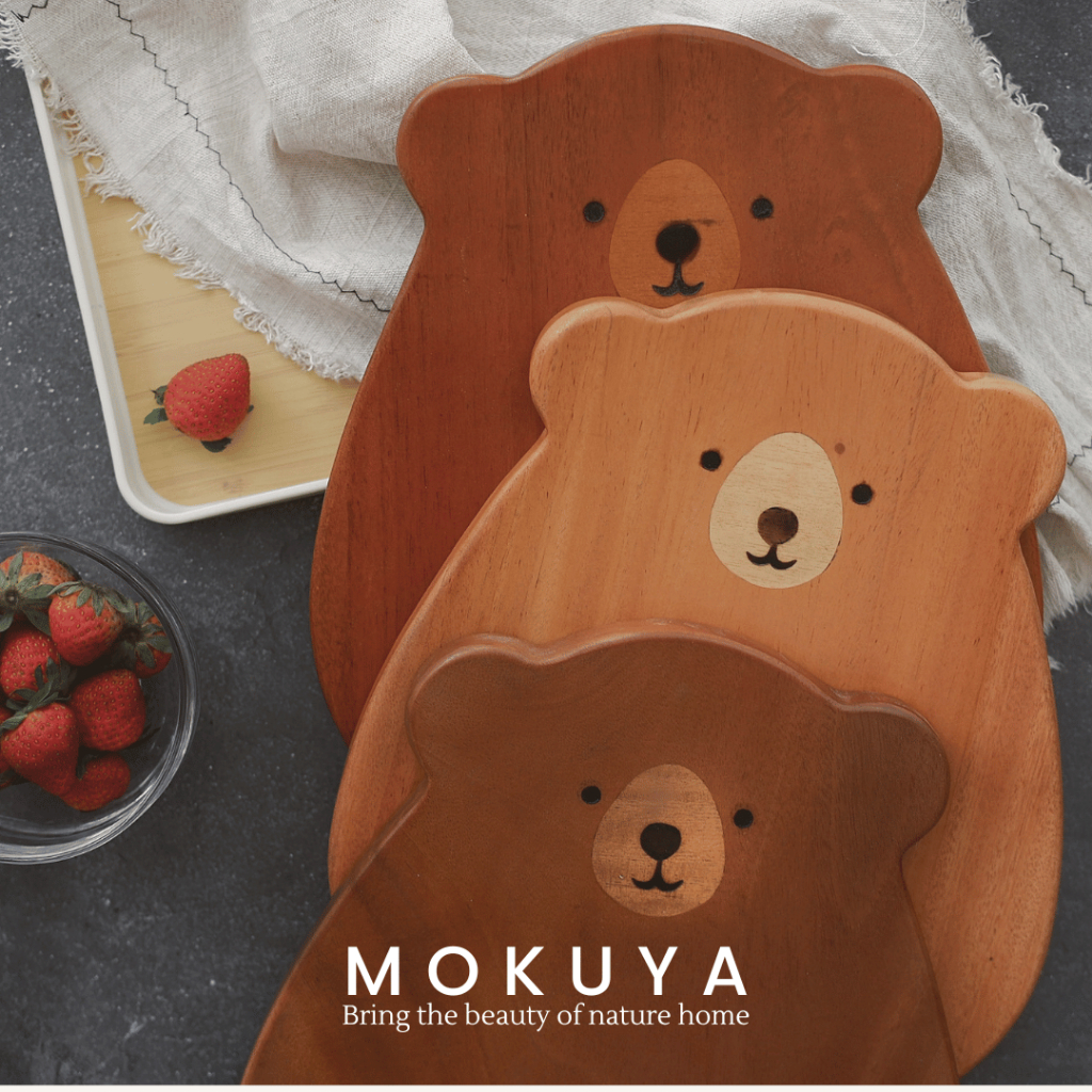 GOM - Piring Kayu Estetik Beruang | Bear Wooden Plate Lucu untuk Dessert Cemilan Dapur Anak Flatlay