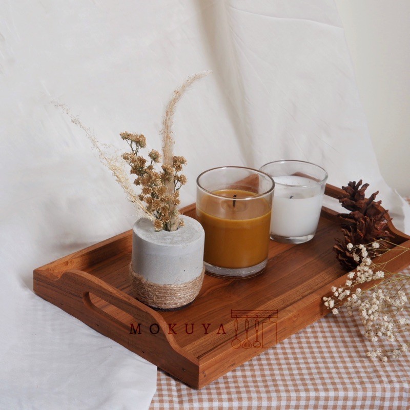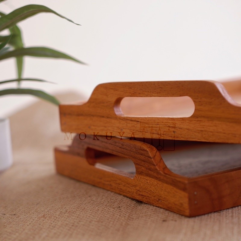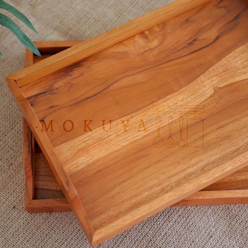 [ ICHI ] Nampan kayu jati baki kotak. Wooden tray (kayu sambungan tidak utuh)
