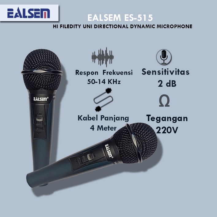 Mic Kabel Ealsem - Mikropon Dynamic Super Peka, Low Noise & Anti Feedback, Suara Jernih Bass Dalam, untuk Karaoke, Band, dan Live Performance ES515