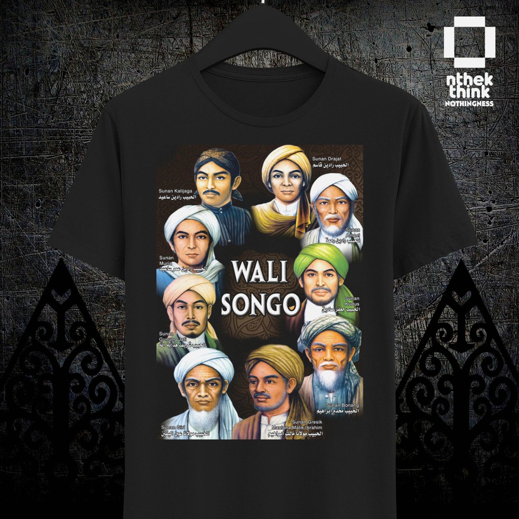 T Shirt Kaos Gambar WALI SONGO - WALISONGO - Sembilan Wali - Premium Black DTG Printing