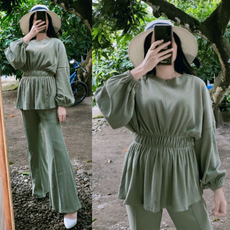 Nami Set Knitt / One set polos premium / One set Wanita / Set Knit / Knitting / Pleats set / Setelan Wanita Kekiniam Jumbo - blusme.id