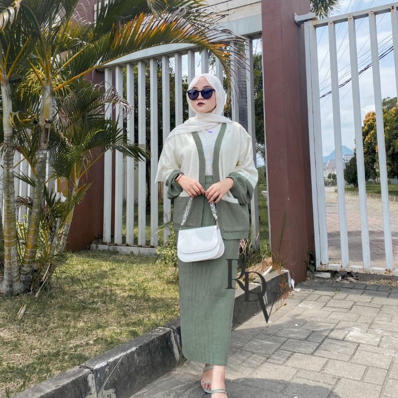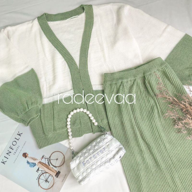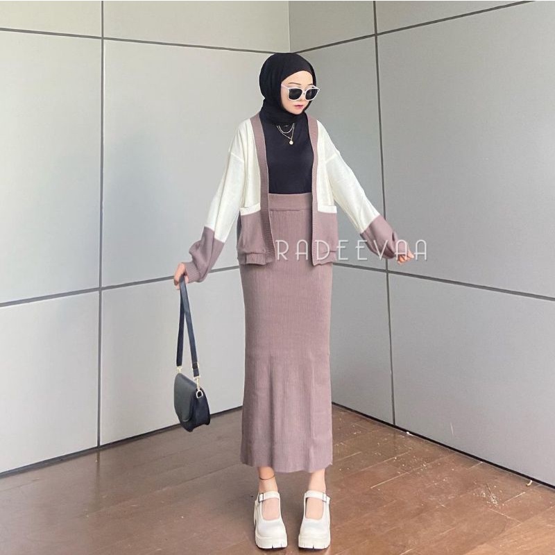 ONE SET RAJUT TWO TONE CARDIGAN DAN ROK KNIT PREMIUM