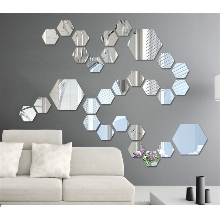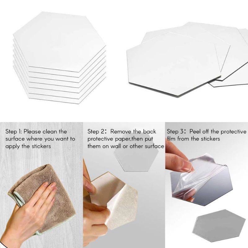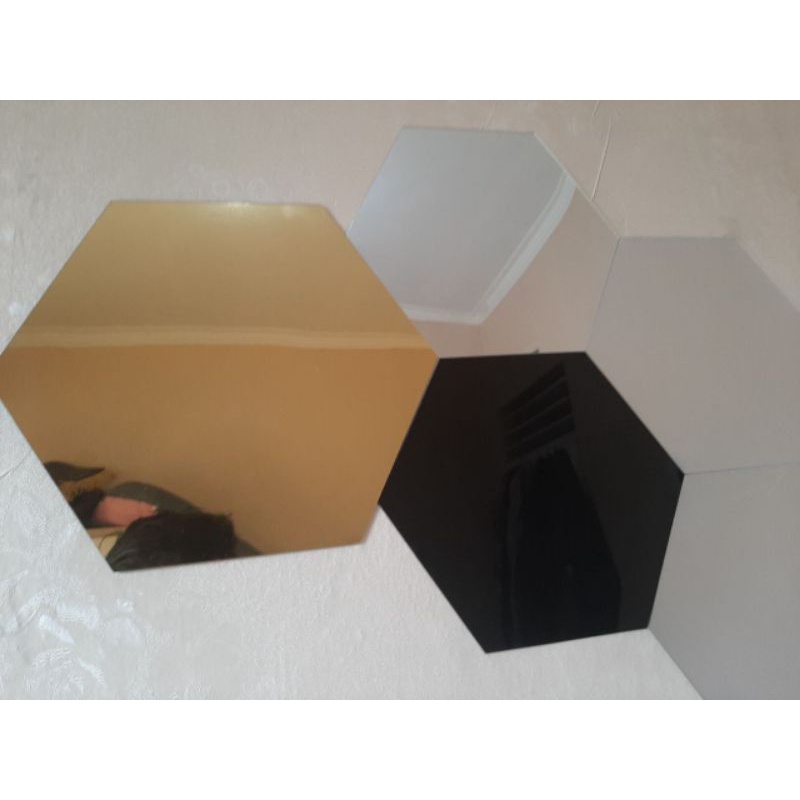 Hexagonal Cermin Tempel Kaca Sticker Segi Enam Hexagon Mirror Acrylic Dekorasi Hijang Akrilik