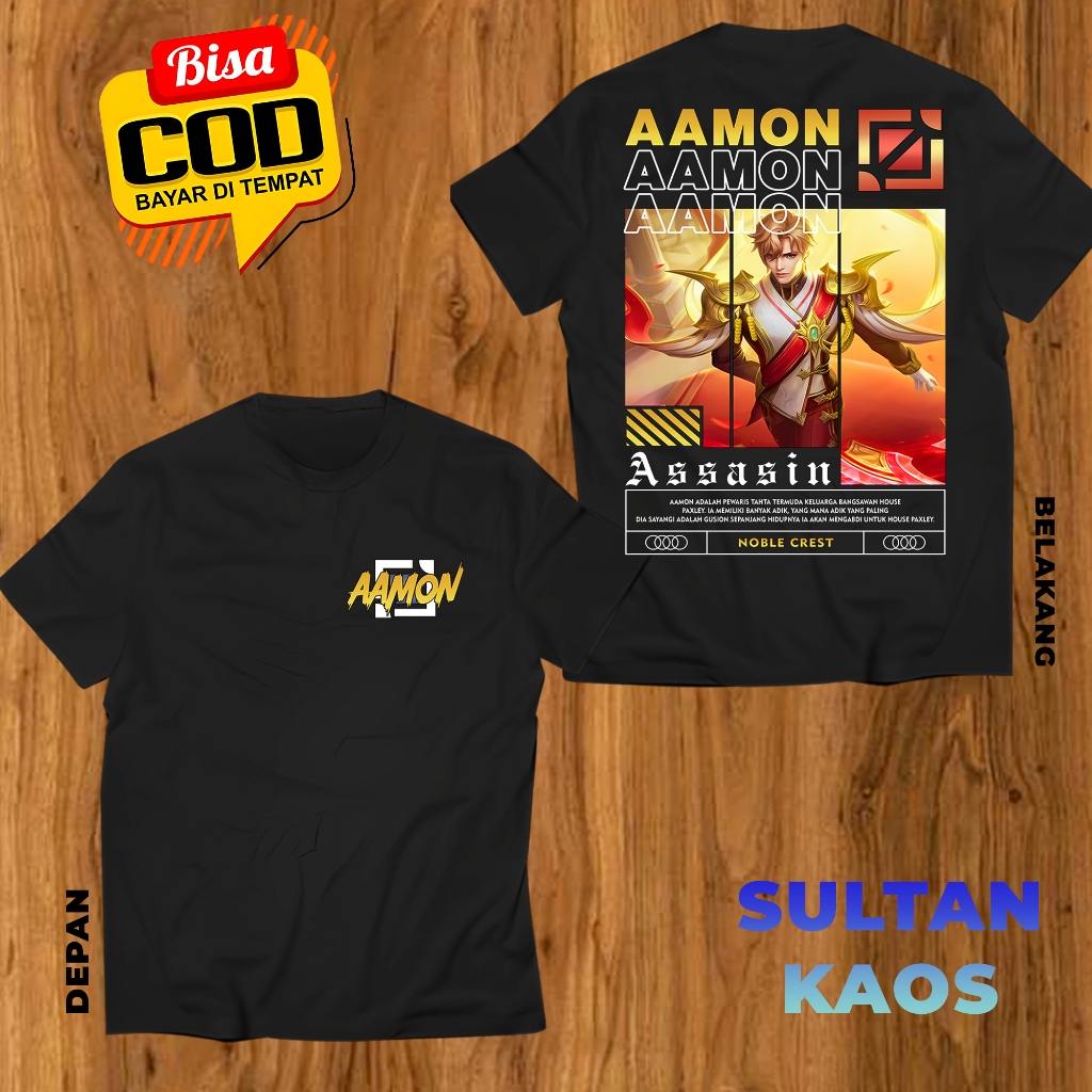 KAOS DEWASA GAME MOBA AAMON NOBLE CREST BAJU ML AAMON ASSASIN TSHIRT MLBB BISA REQUEST SKIN BAJU MOBA