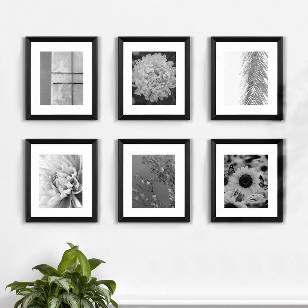 DEKORASI DINDING RUANG KELUARGA FRAME FOTO 1 SET 6 PCS HITAM DAN PUTIH