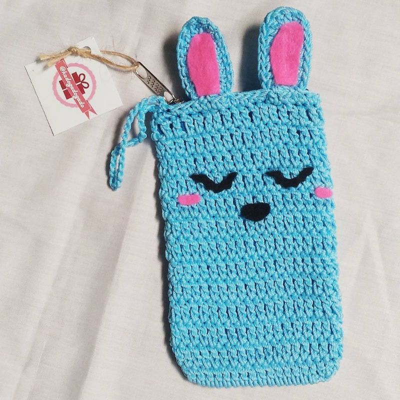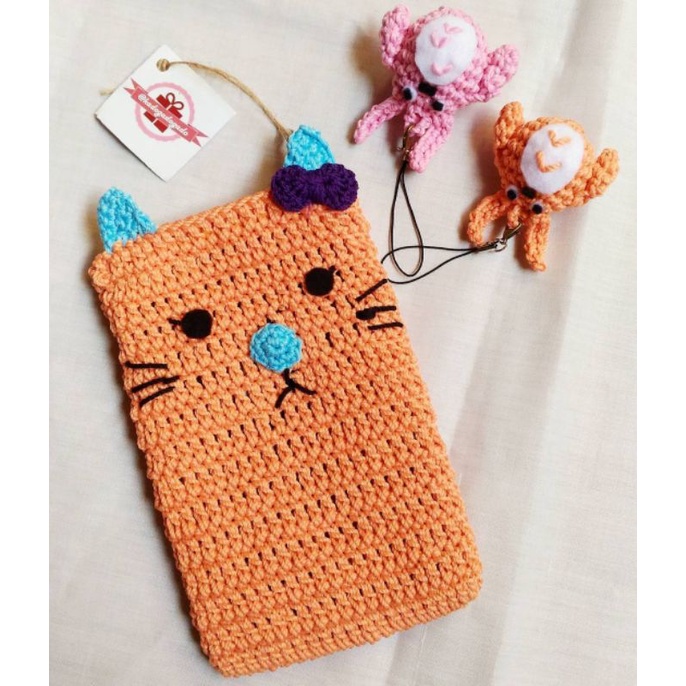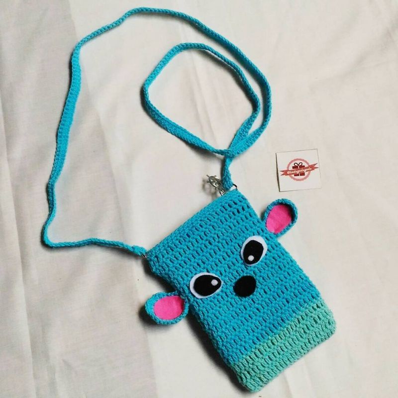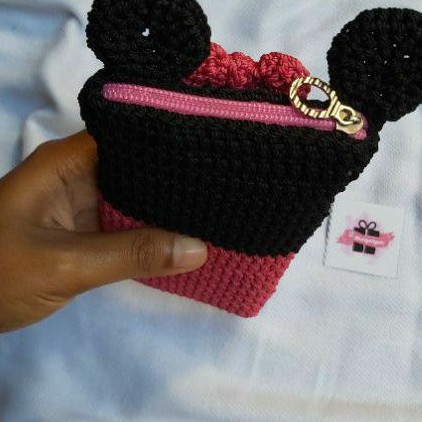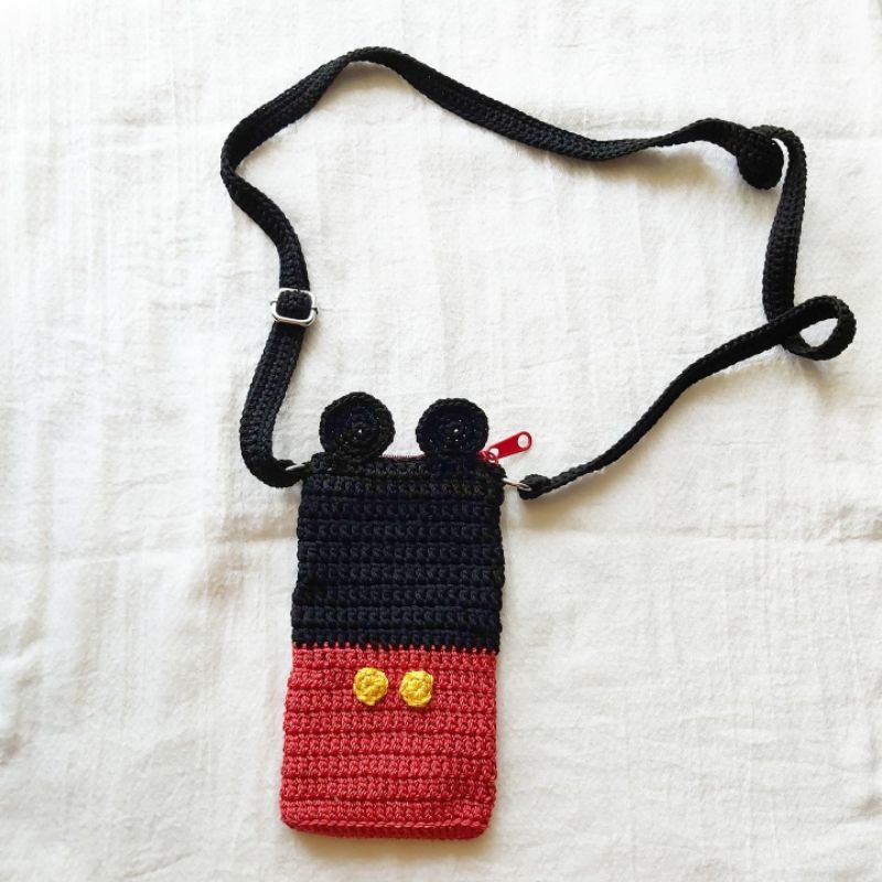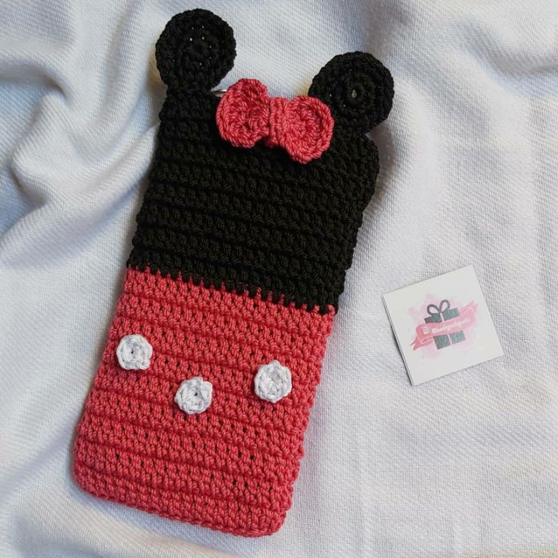 Tas Kantong Pouch HP karakter minnie mickey mouse rajut