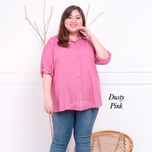 Kemeja Wanita Perempuan Dusty Pink Rayon Adem Kancing Full Tidak Luntur Kecil Besar Jumbo Bigsize