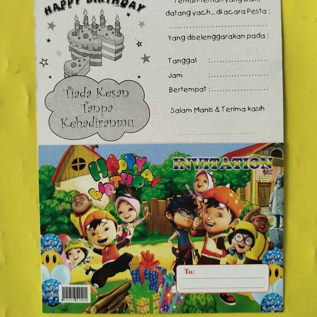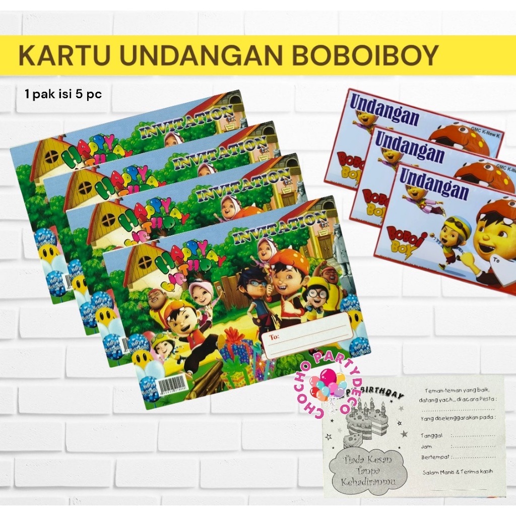Kartu Undangan Ulang Tahun BOBOIBOY Isi 5 pc / Kartu Undangan Ultah Anak Boboiboy