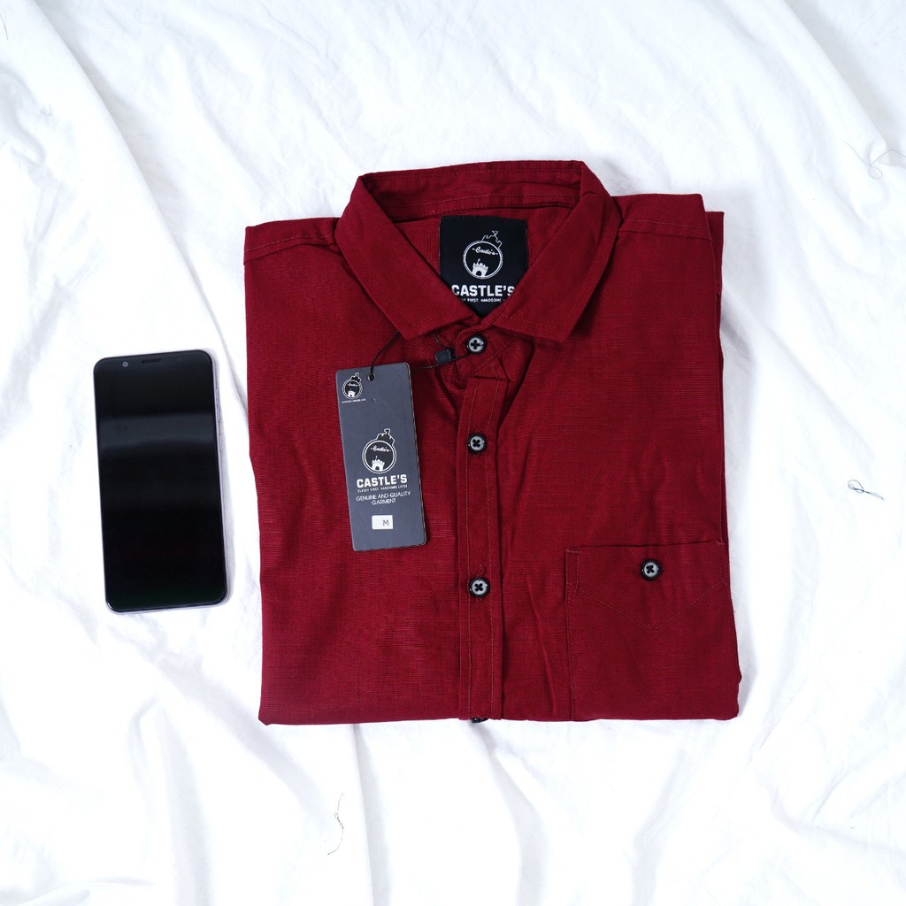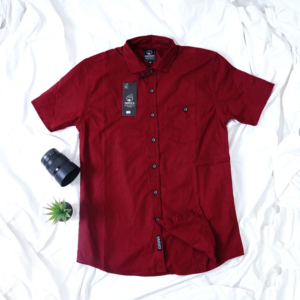 Babedo Kemeja Polos Pria Casual Premium Maroon Lengan Pendek
