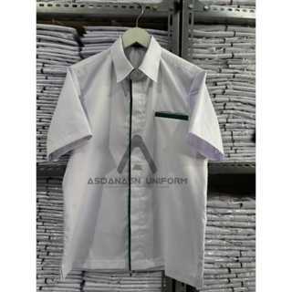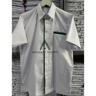 [ LIST HIJAU ] BAJU DINAS PUTIH PRIA list Hijau / Seragam Kerja Putih Pendek