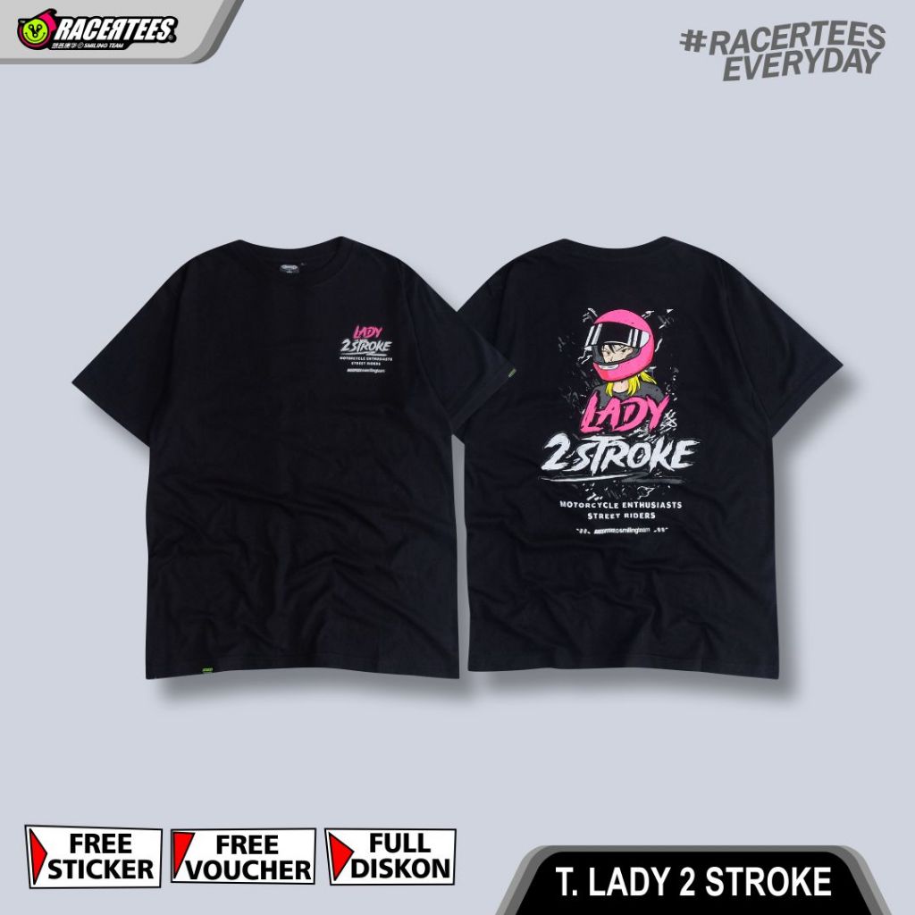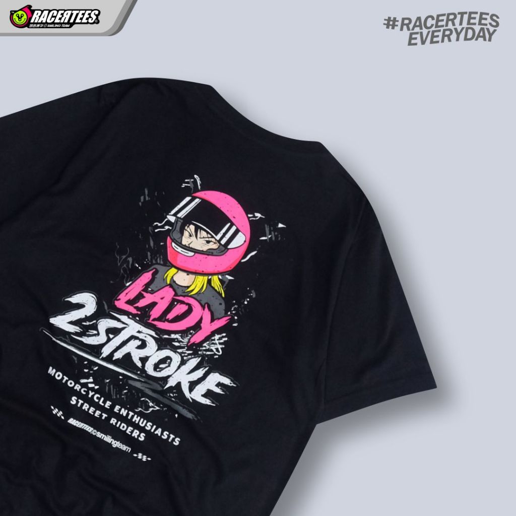 RACERTEES x LADY TWO STROKE - Kaos Lengan Pendek Hitam
