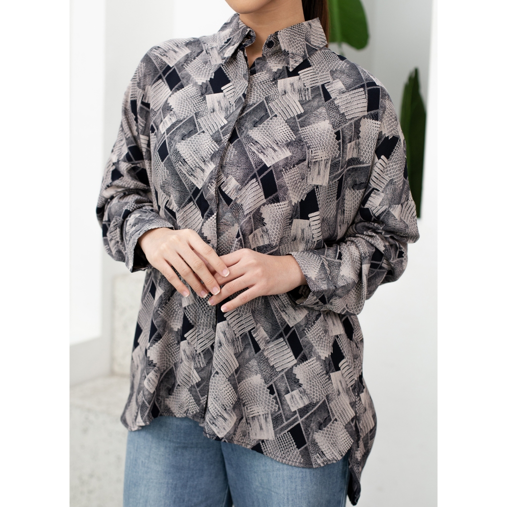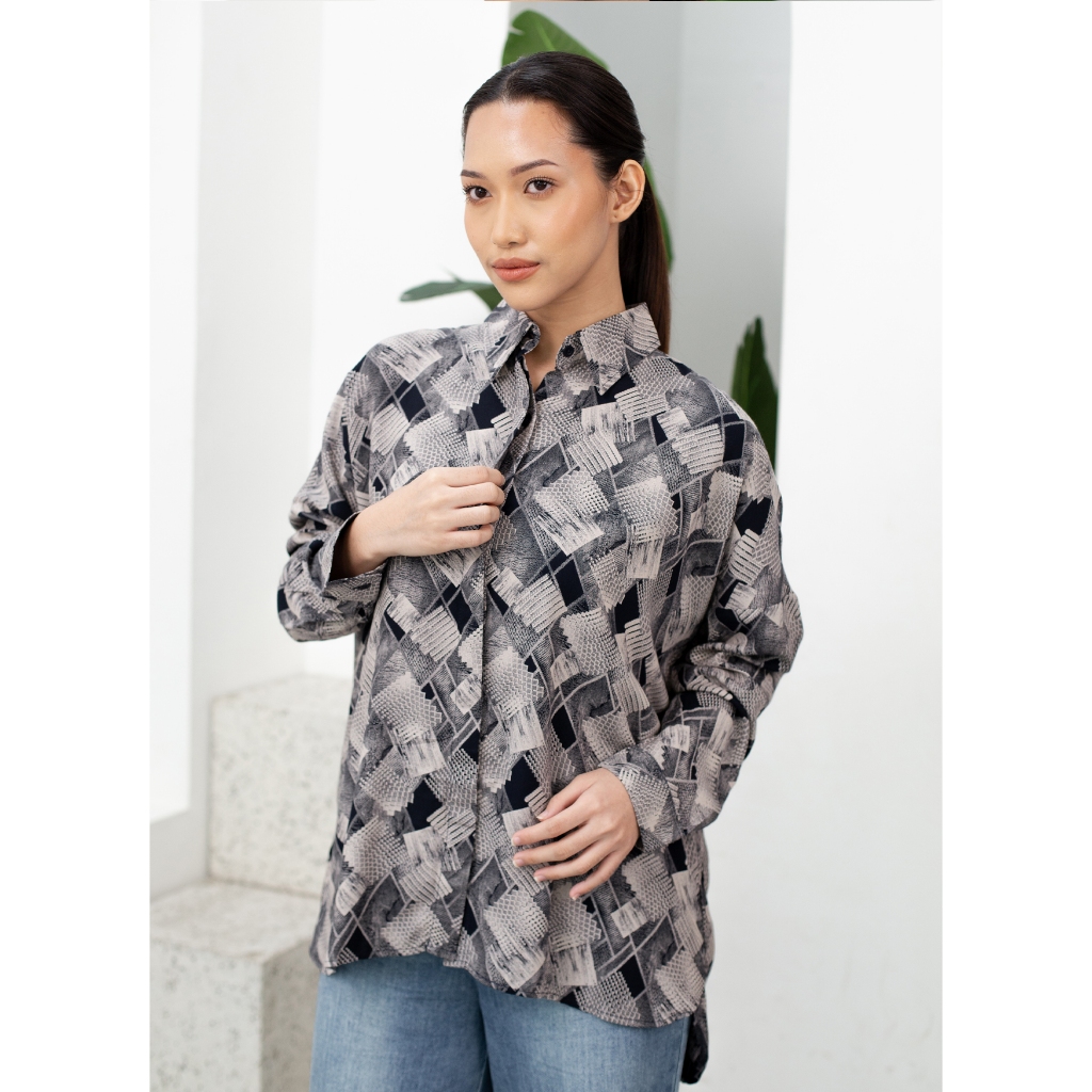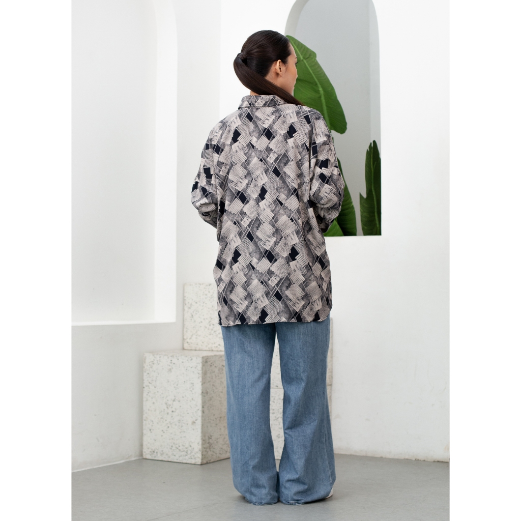 Ixora Jimin Oversized Shirt - Kemeja Wanita Oversize Lengan Panjang Motif Abstrak