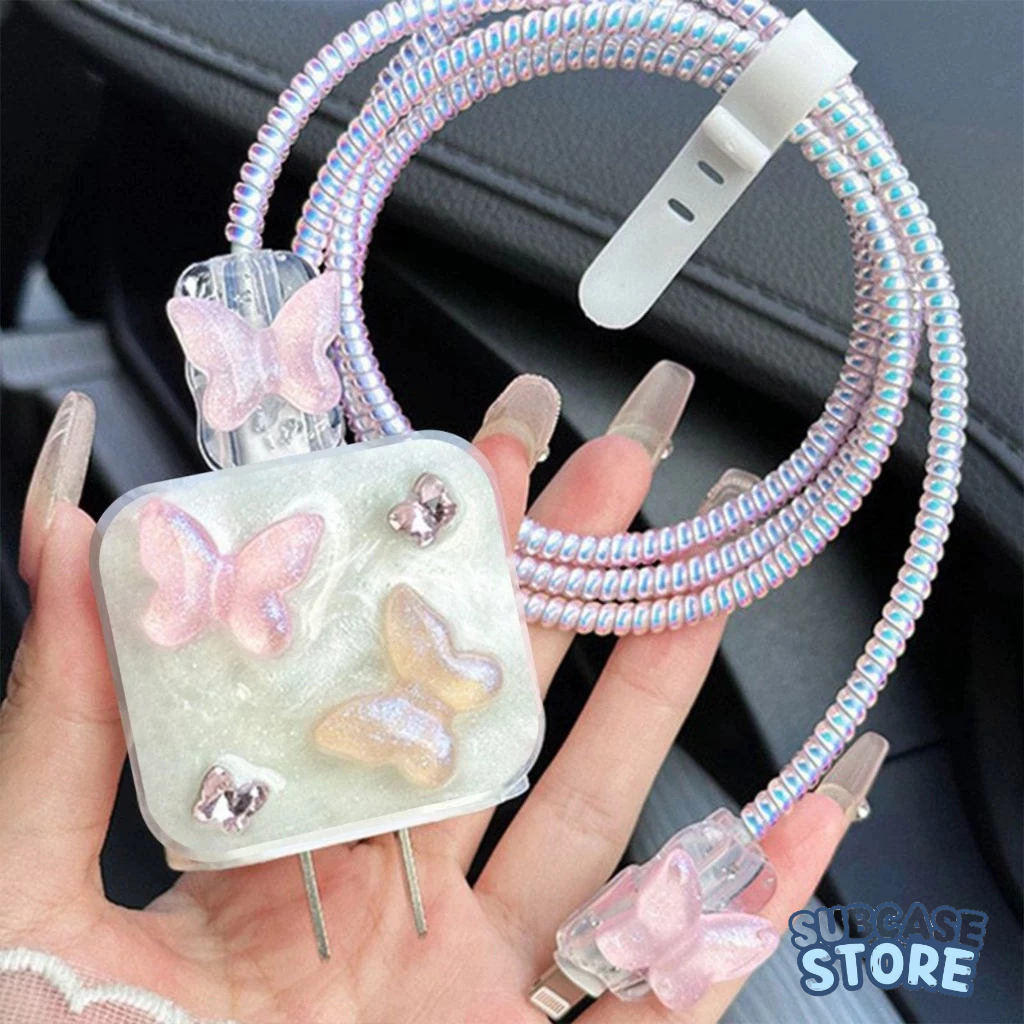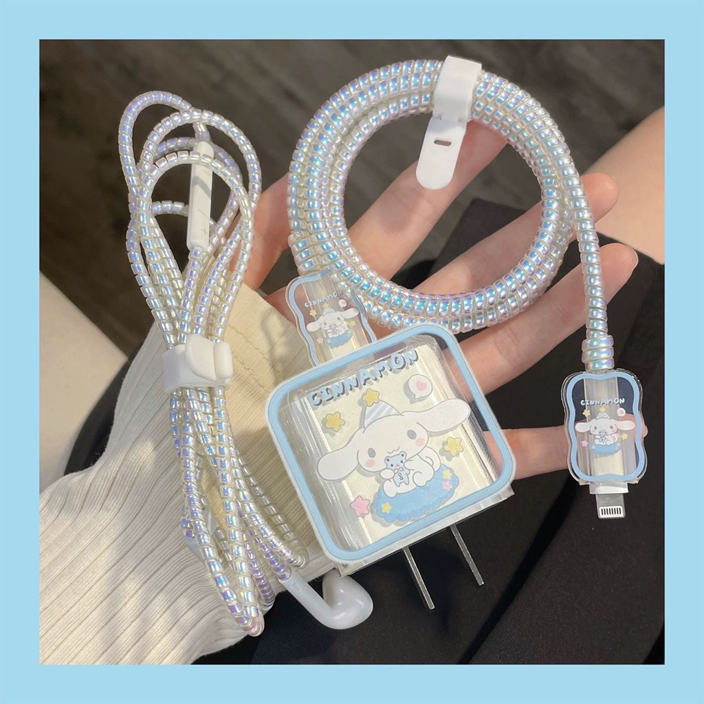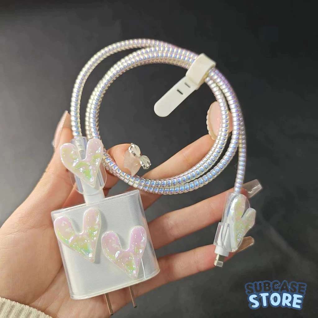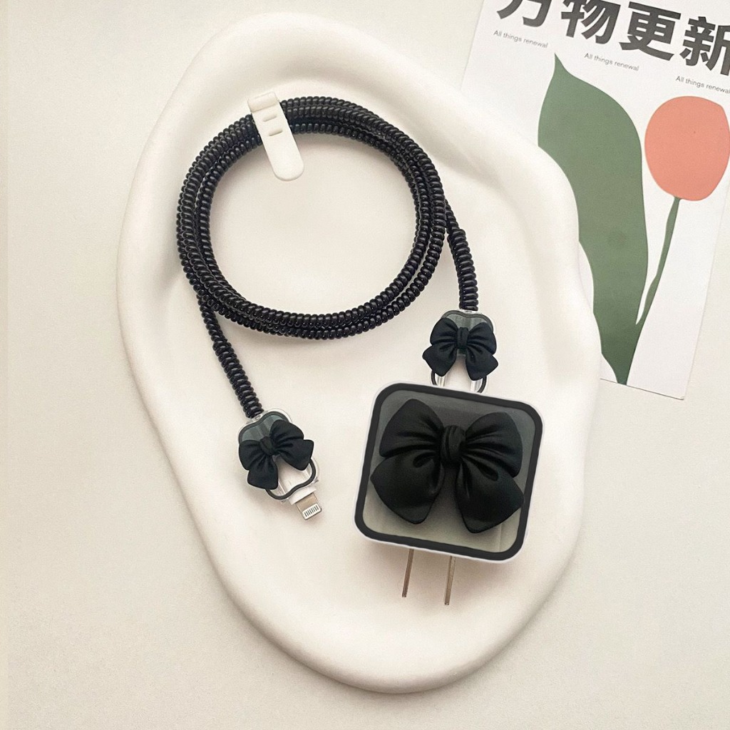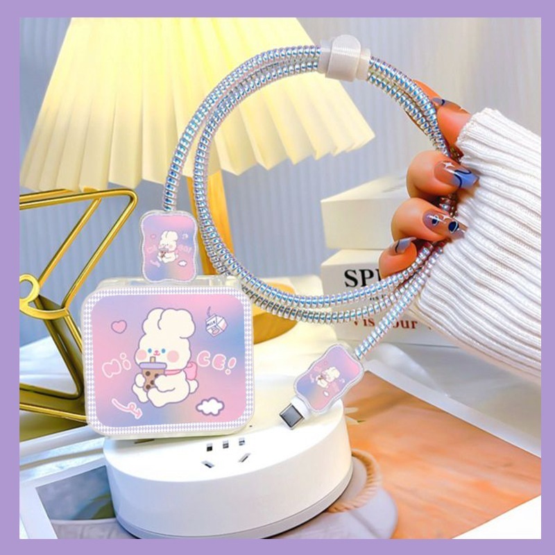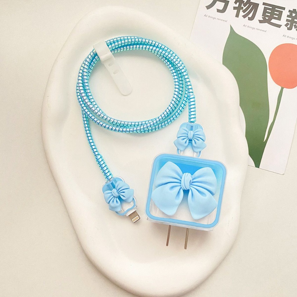 Coquette 5 in 1 Pelindung Kepala Charger Case dan Pelindung kabel iphone 18W/20W Adapter Adaptor Case Motif Bervariasi Adaptor Character Korean Elegan Pita Love Coquette Flower Bear