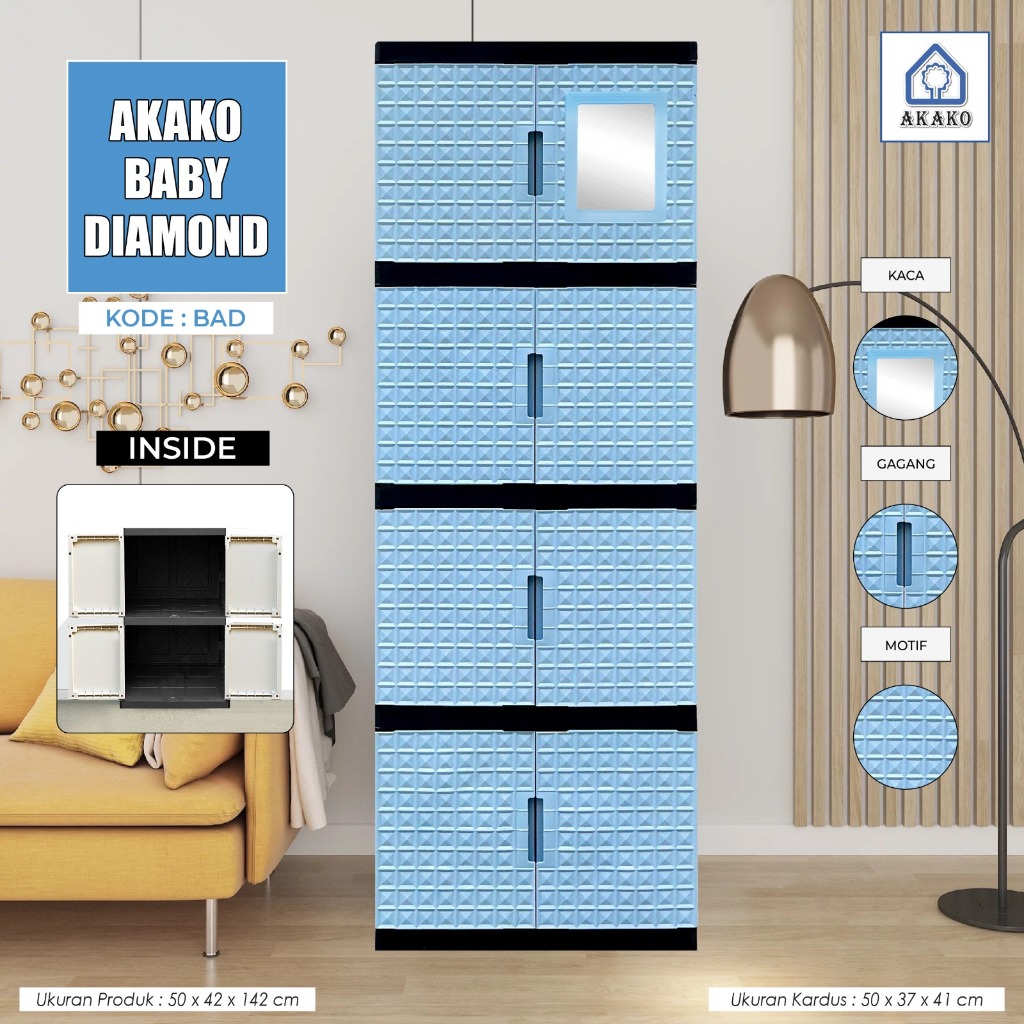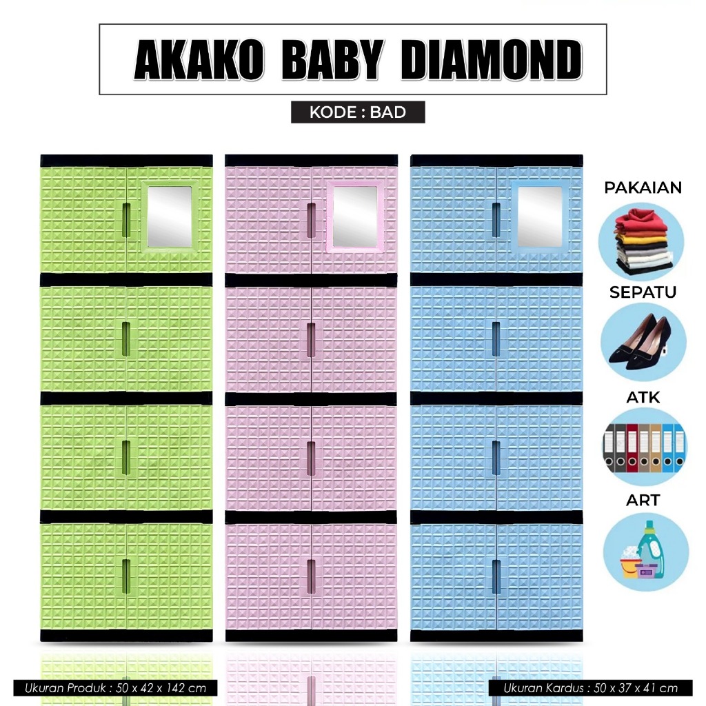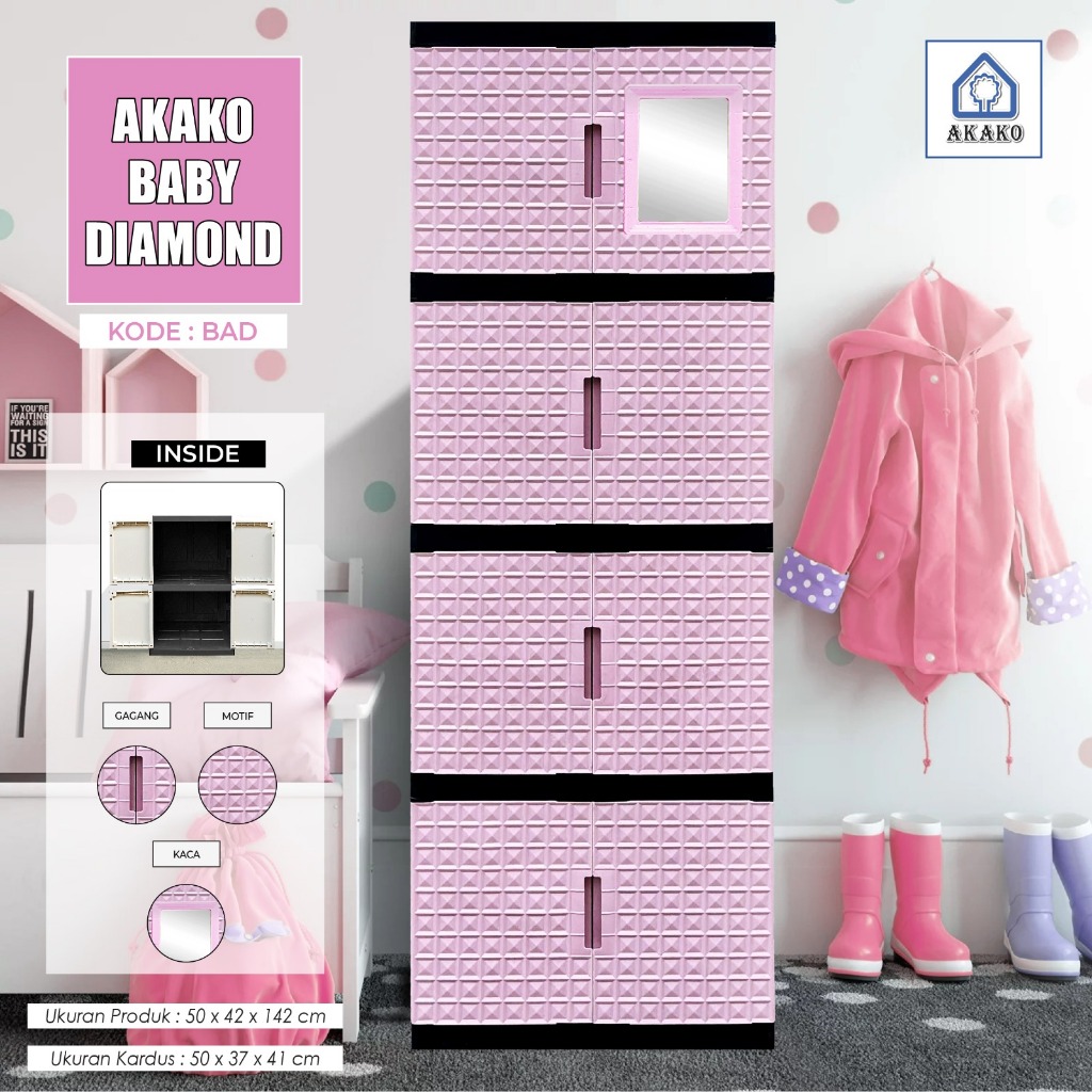 AKAKO - LEMARI PAKAIAN PLASTIK SWING DIAMOND SUSUN 4 DAN 5 PAKAI KACA