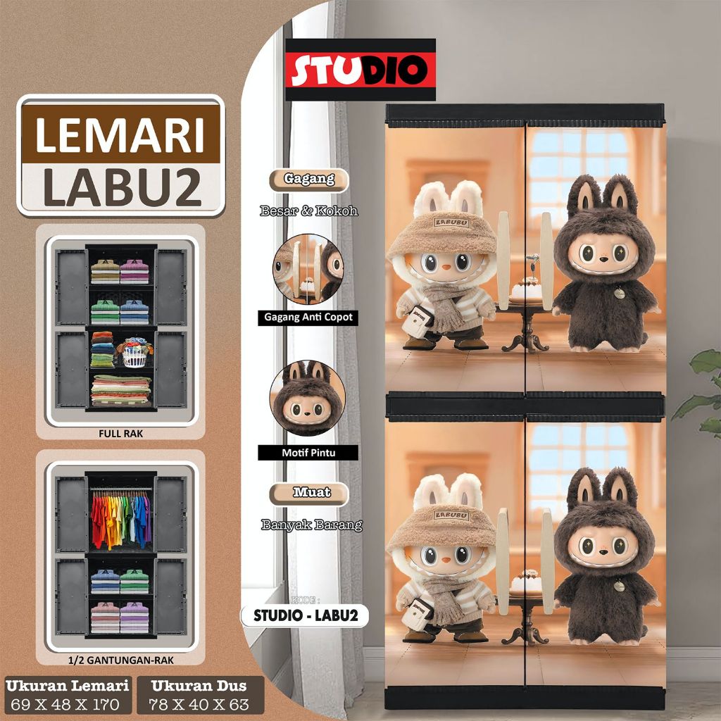 AKAKO - LEMARI PAKAIAN LEMARI PLASTIK 2 PINTU LEMARI MEGAJUMBO MOTIF PRINTING LABU LABU