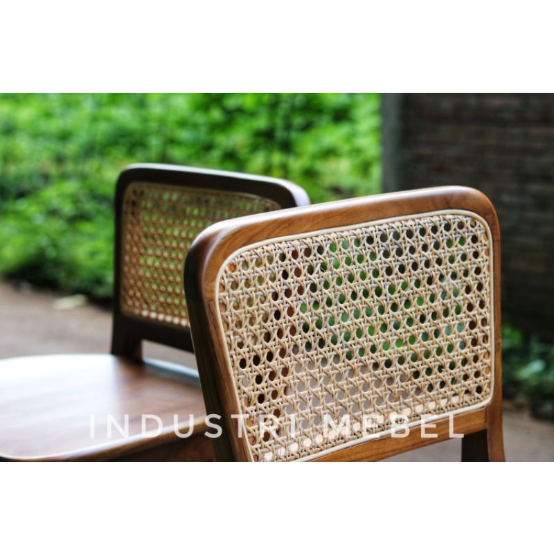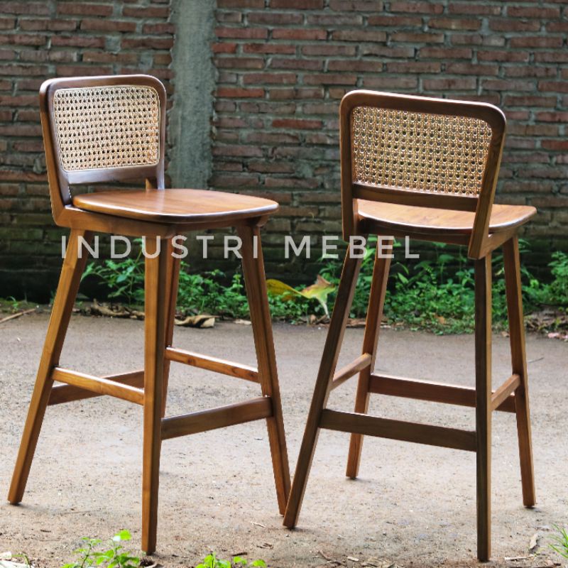 Kursi Bar Retro Rotanan Kayu Jati Finishing Natural - Kursi Makan Bar Cafe Resto Jati