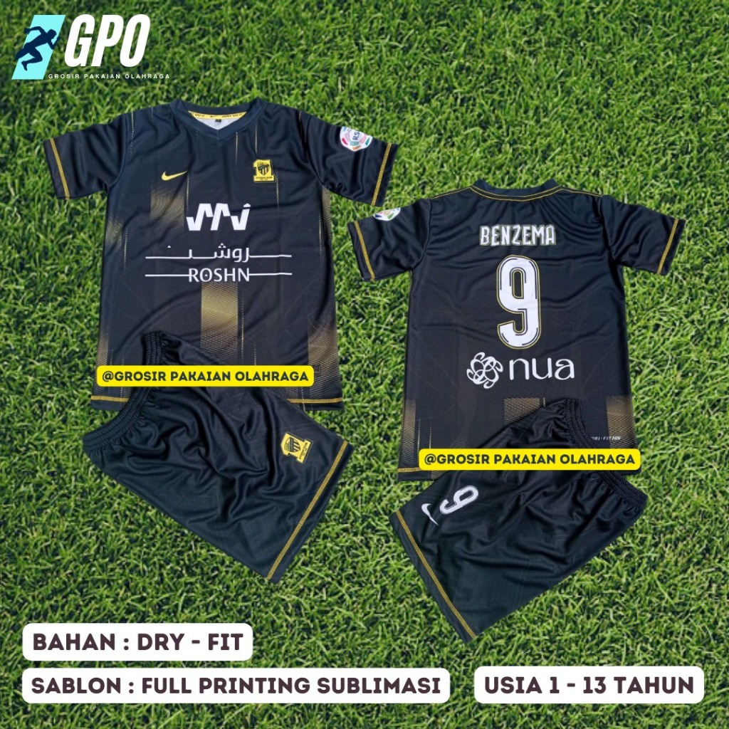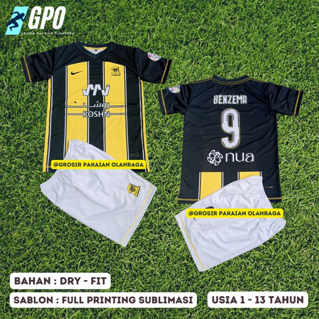 Setelan Jersey Anak Al ittihad Benzema \ Jersey Benzema Anak \ Jersey Bola Anak Terbaru \ Jersey Benzem \ Jersey Liga Arab