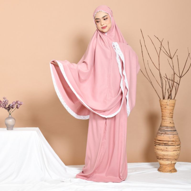 Mukena Kamelia Traveling Kamelia Series Mukena dewasa disertai renda rajut 4cm