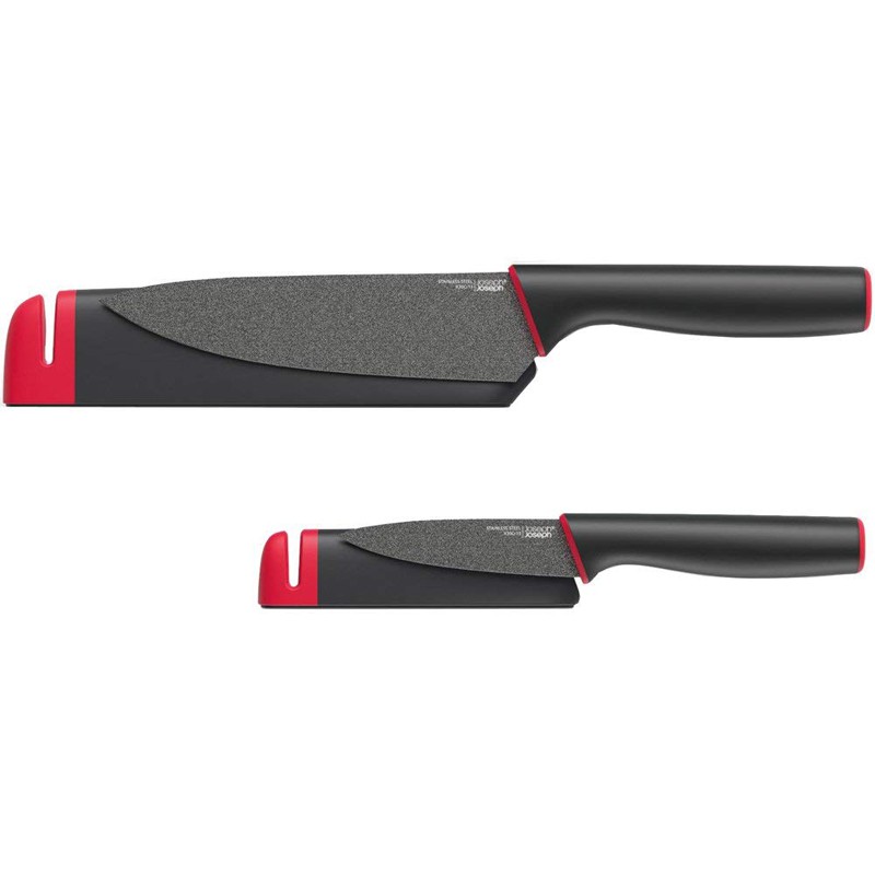 Joseph Joseph Slice&Sharpen Twin Pack (6" and 3.5") - Black/ Red / Pisau Dapur dengan Pengasah Pisau