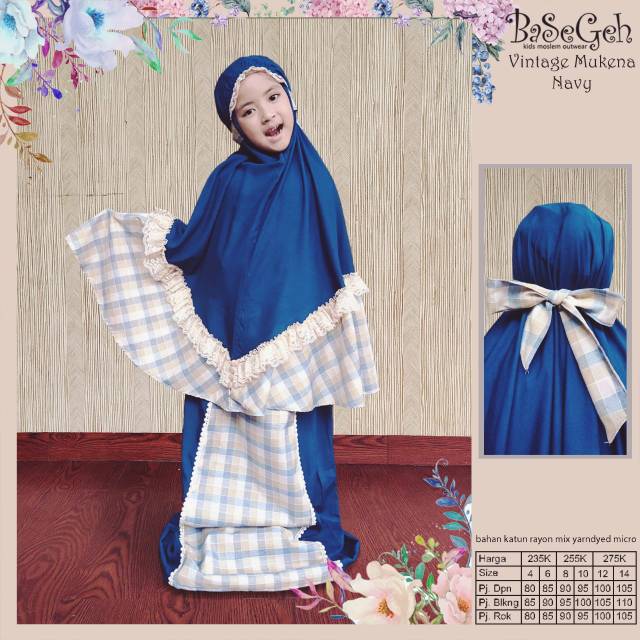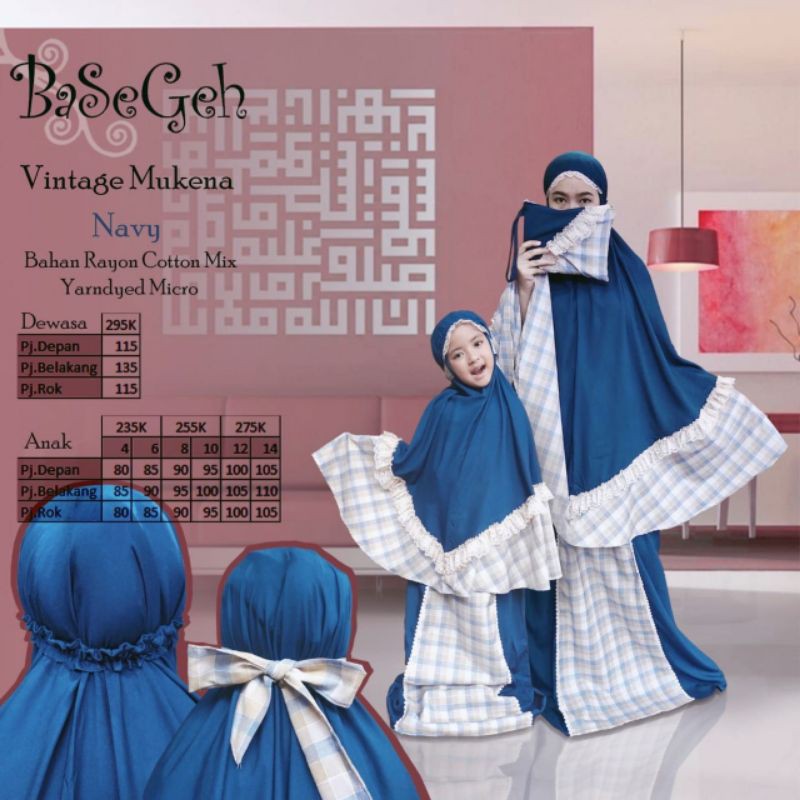 (Size 4 - dewasa) Mukena Vintage Navy | BASEGEH