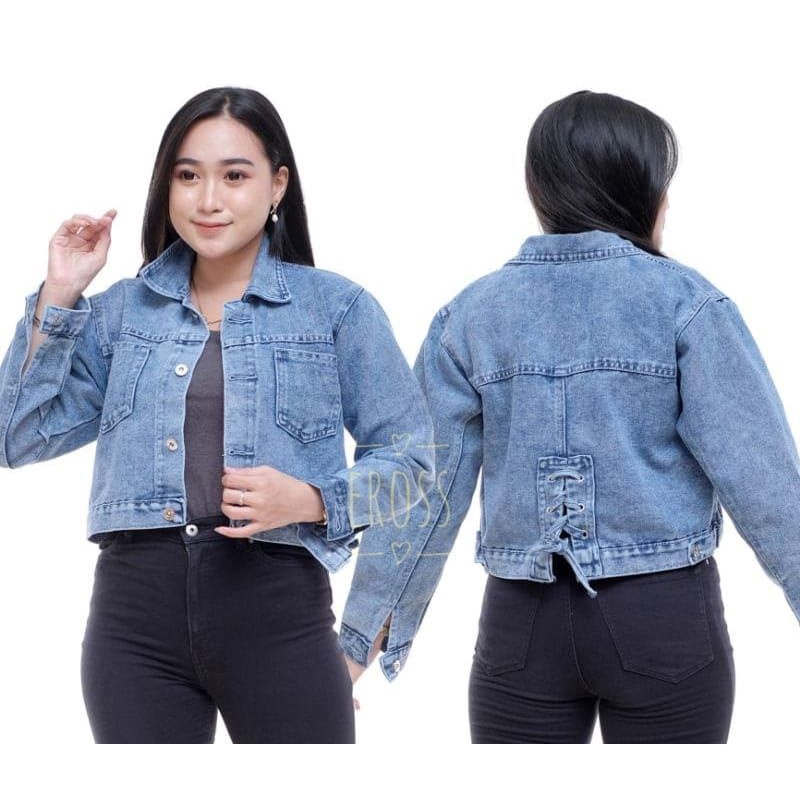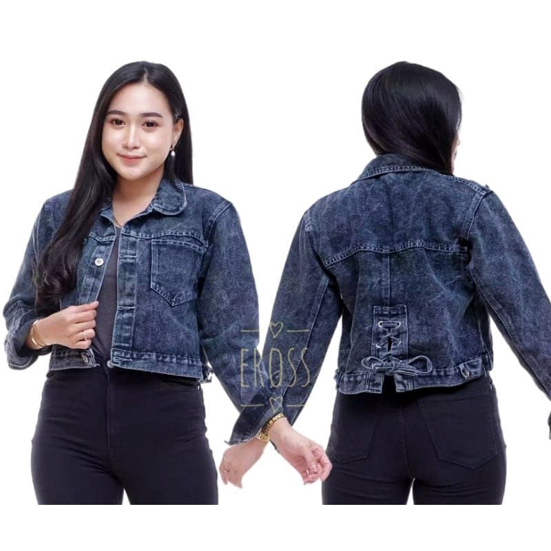 Jaket Jeans Wanita Crop Murah Levis Denim Ripped Fashion Cewek Kekinian Terbaru