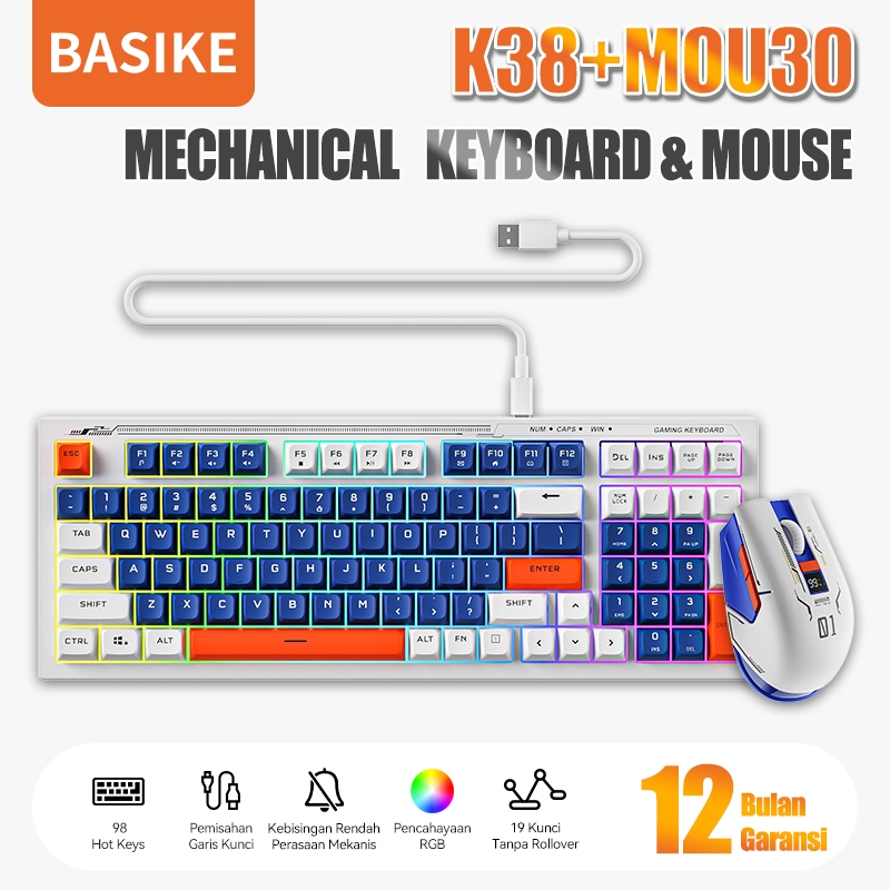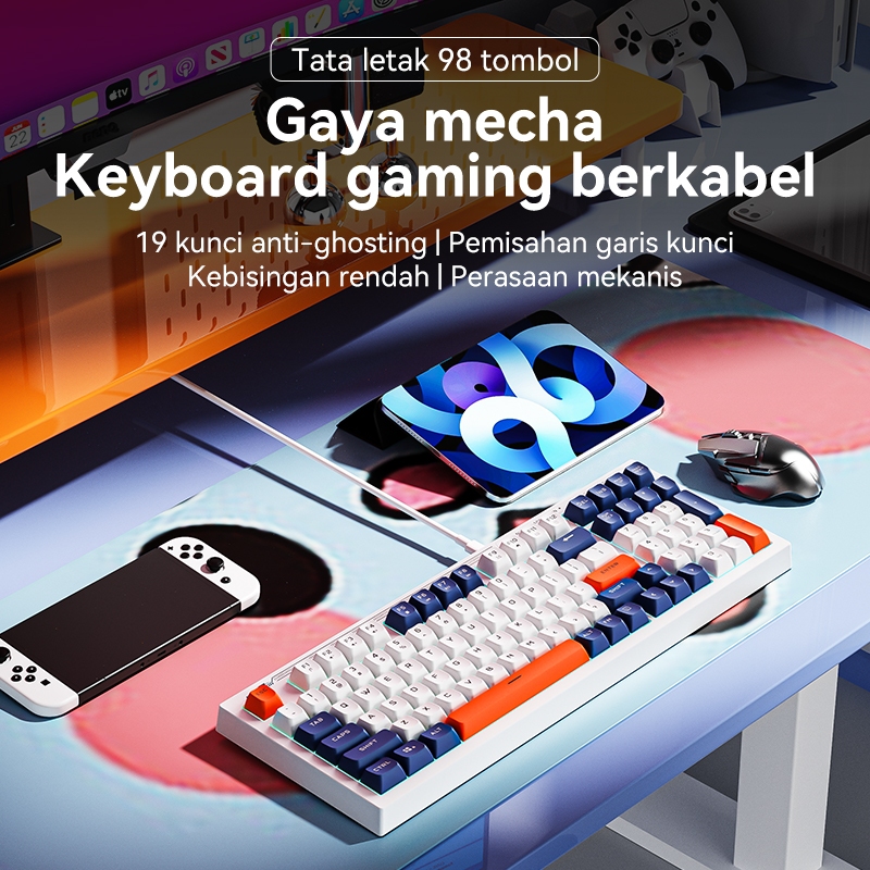 (HOT)BASIKE Keyboard Gaming Mechanical RGB Kabel Wired 98keys Mini Portable PC Laptop Original