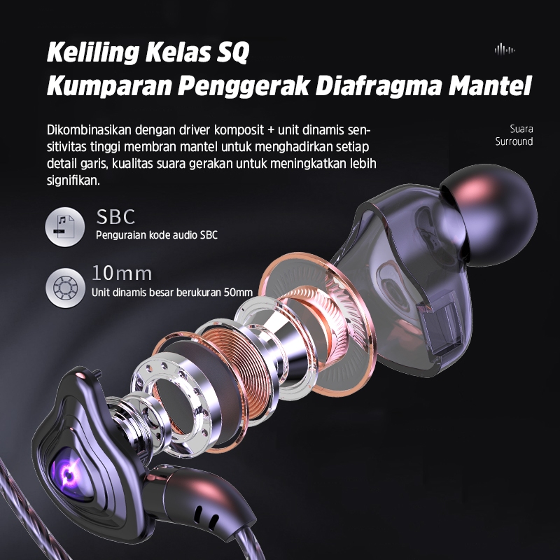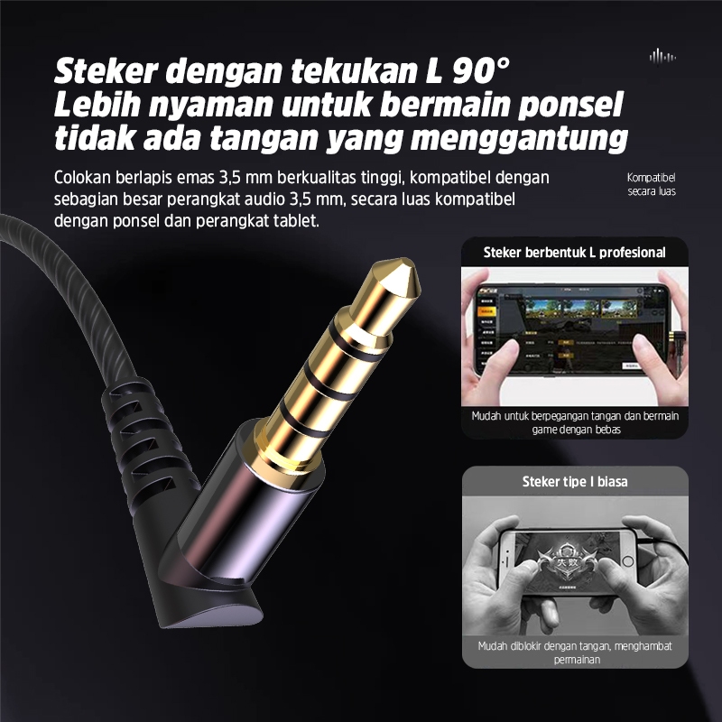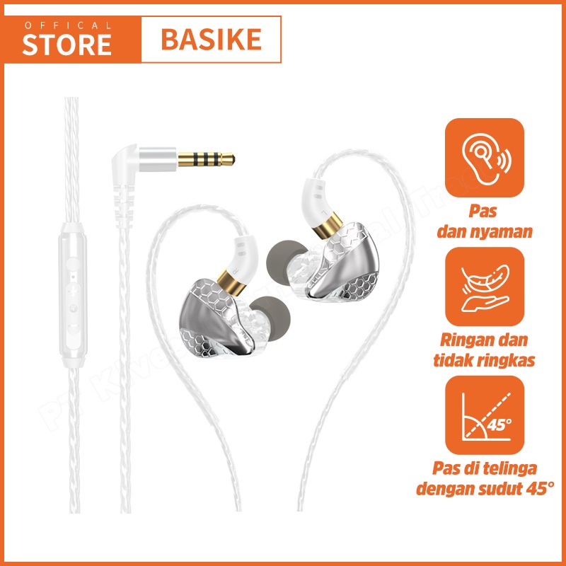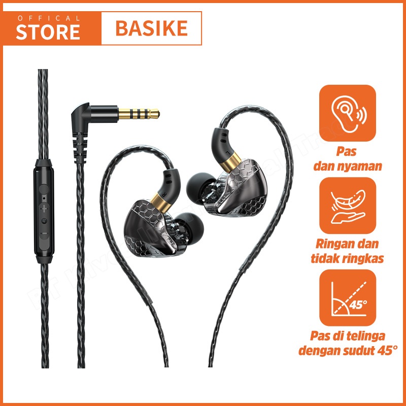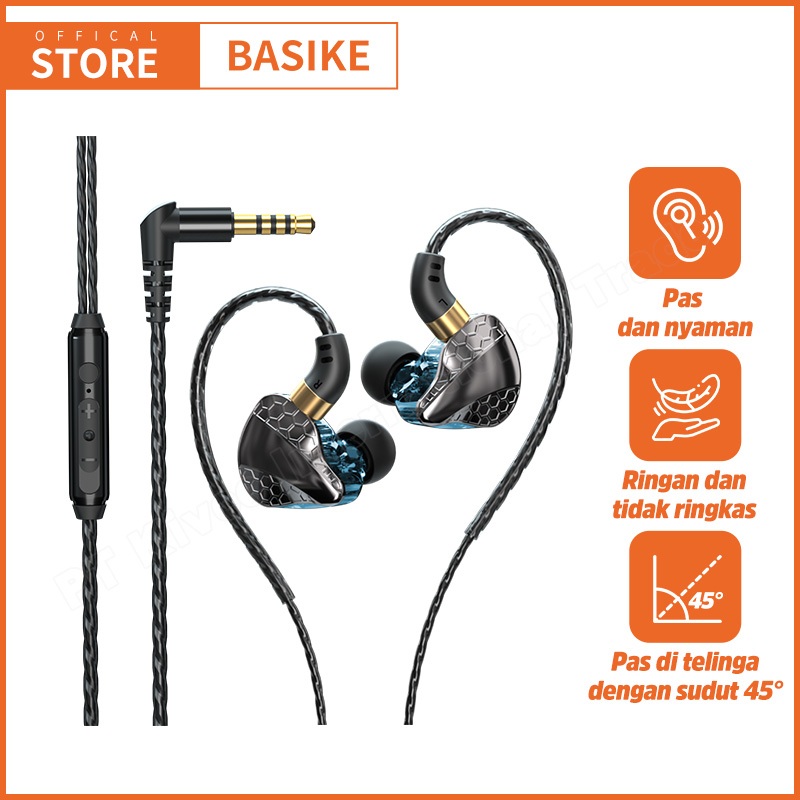 BASIKE Headset Gaming Earphone Sport Super Mega Bass Type-C 3.5mm Anti Serak Anti Penundaan Suara untuk HP Laptop Konsol