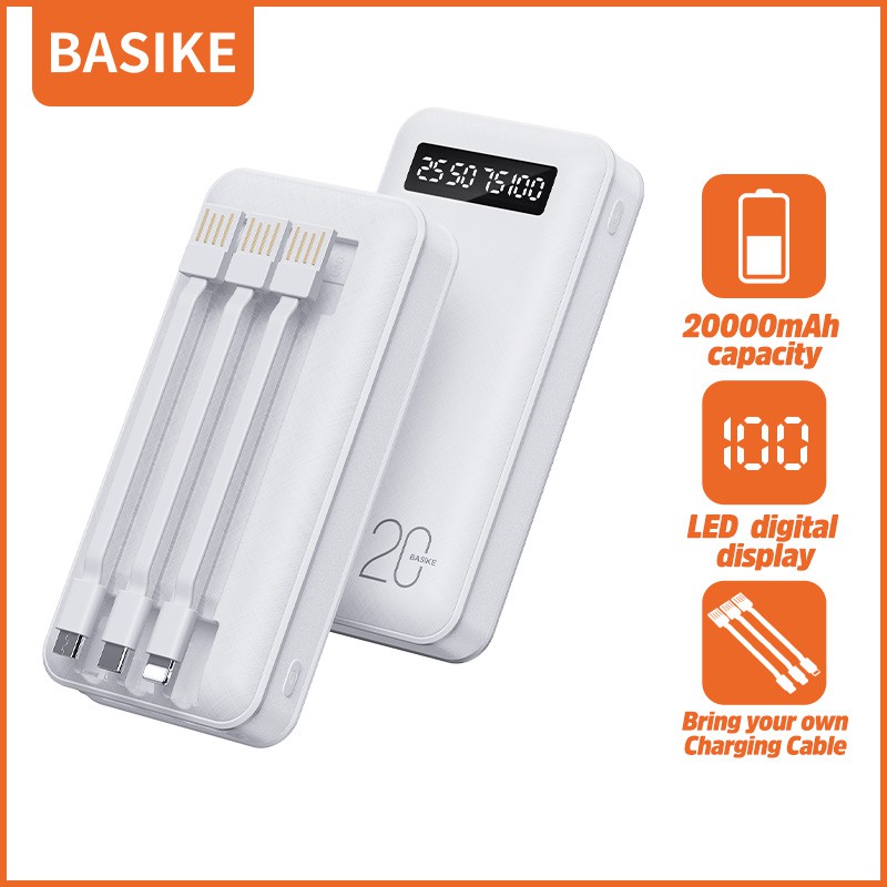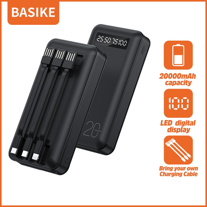 BASIKE Powerbank 20000 mah Fast Charging Murah Mini LCD with Kabel Data Type C Micro USB Lightning