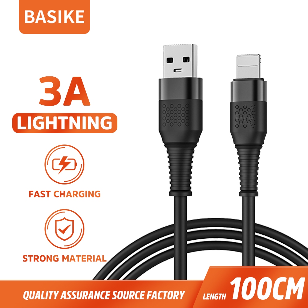 BASIKE Kabel Data Charger Fast Charging Lightning untuk iPhone 7 8 X XS XR 11 12 13 14 15 16 Pro Max
