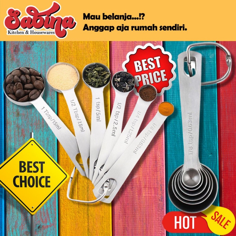 Sendok Takar Bumbu Dapur Measurement Spoon 6 Pcs Stainless Steel