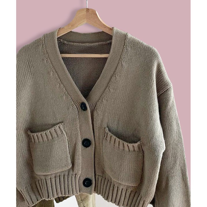 Zara Cardigan Rajut Saku/ Cardigan Rajut Premium Saku Crop
