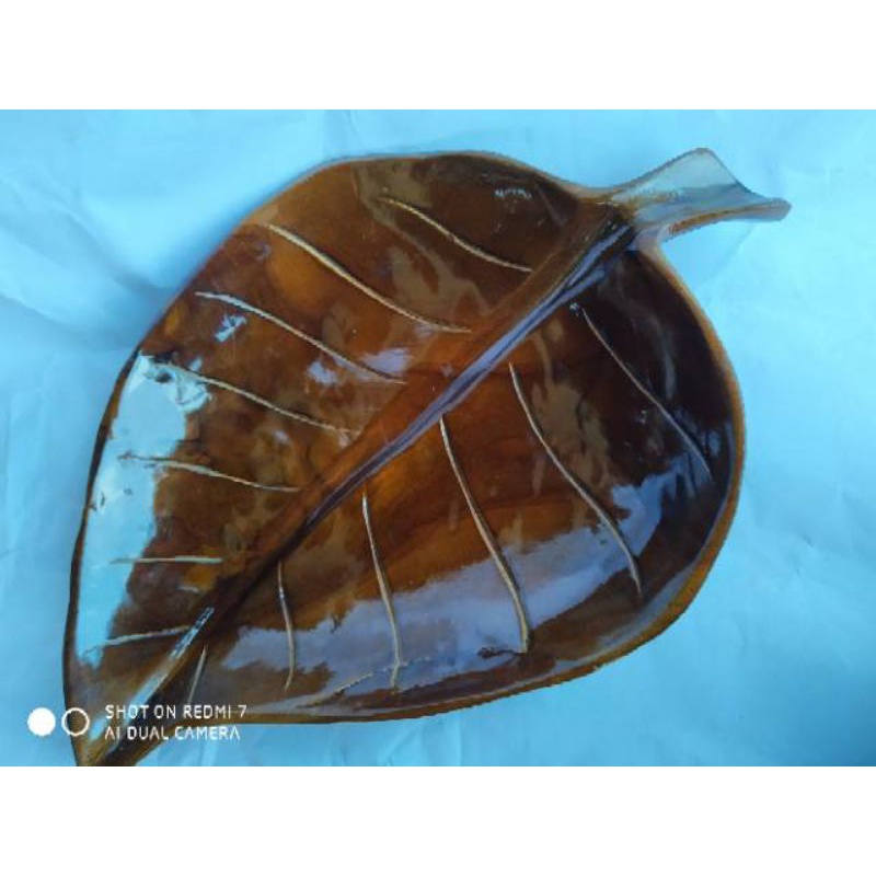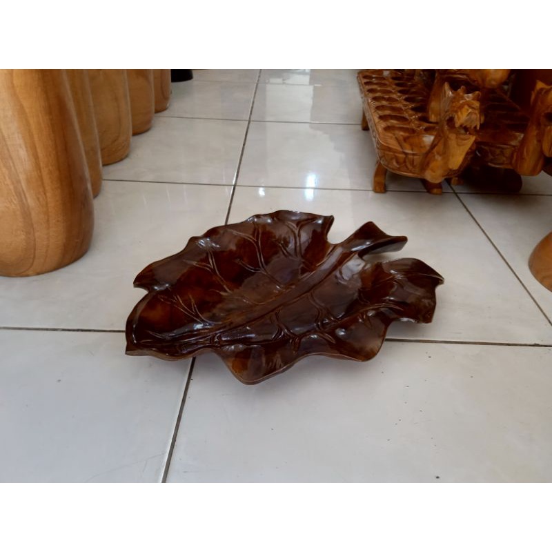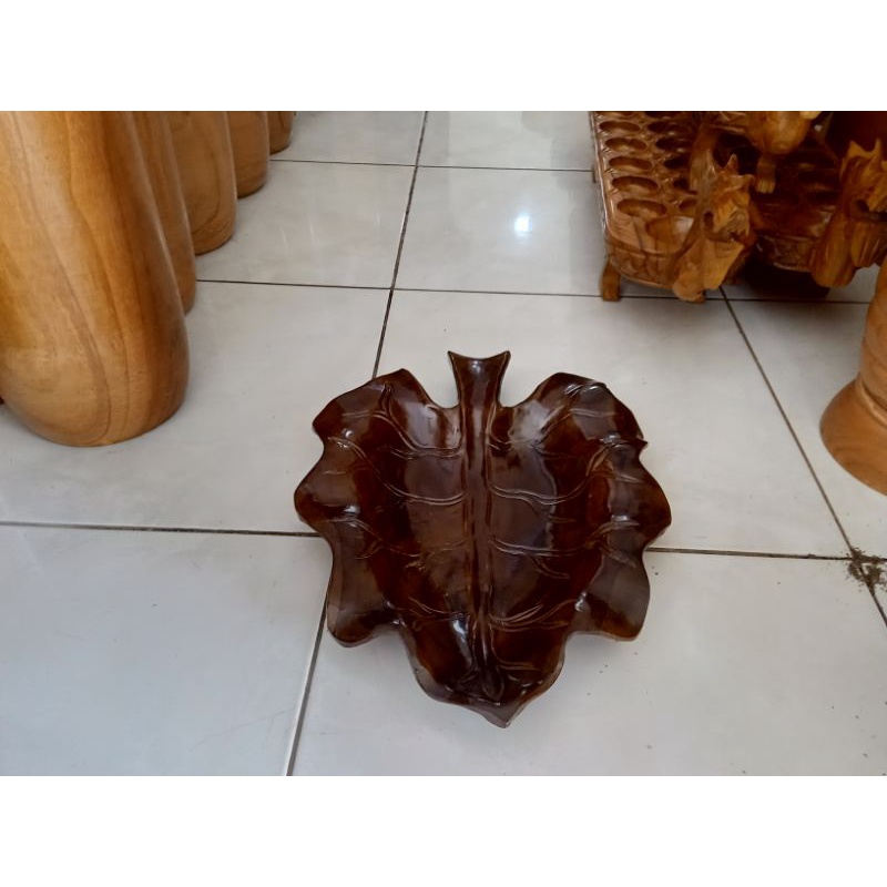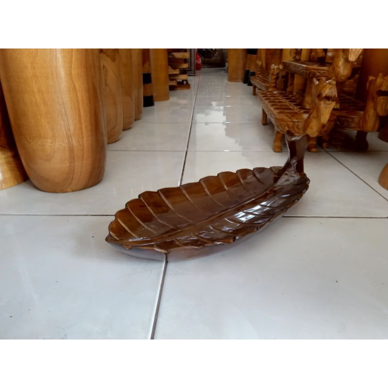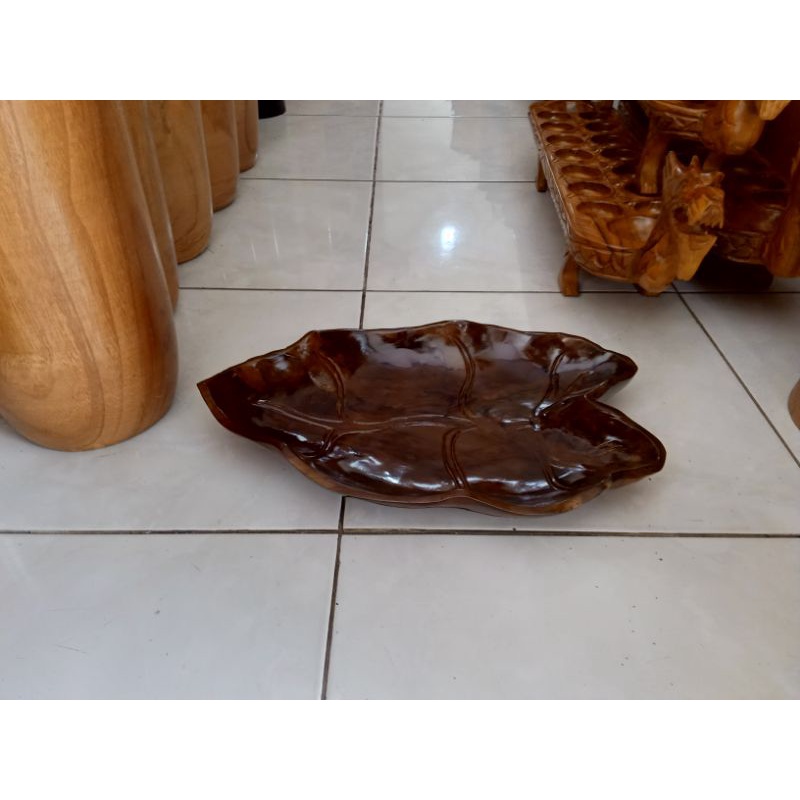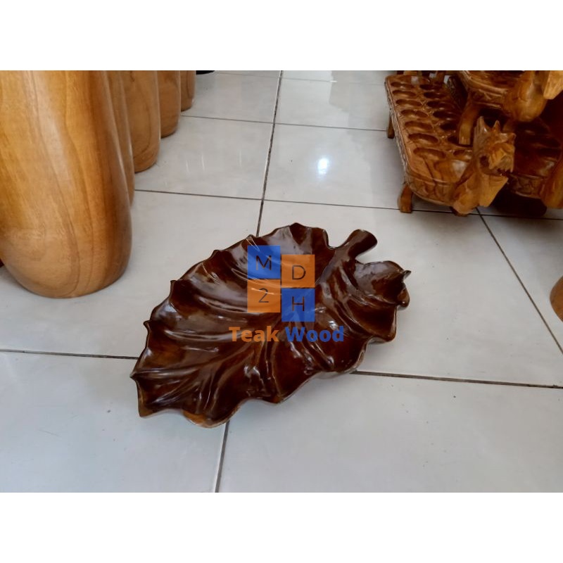 MD2H Tempat Buah Kayu Jati Motif Daun Ukuran 25x40cm Natural Handmade
