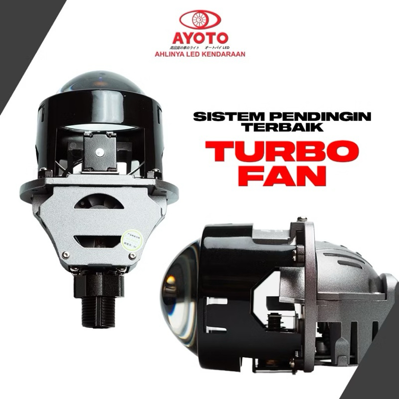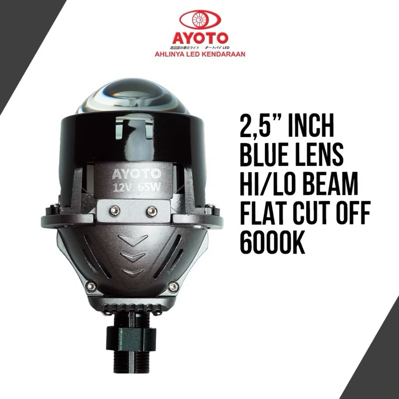 TERMURAH PROMO NEW SUPER TERANG PROJECTOR BILED AYOTO BLUE LENS 2.5 INCH 75WATT HI-LO FLAT CUT OFF 6000K TURBO FAN LED CHIP UPGRADED