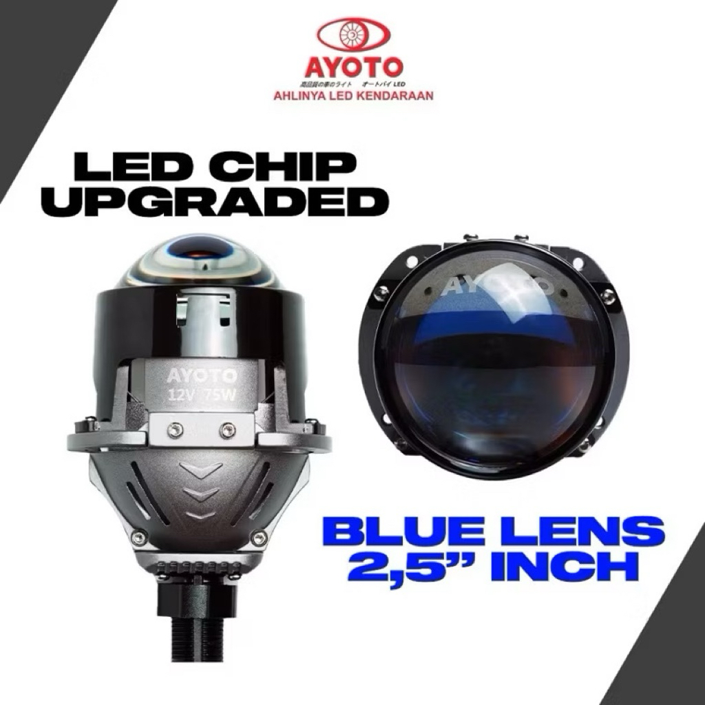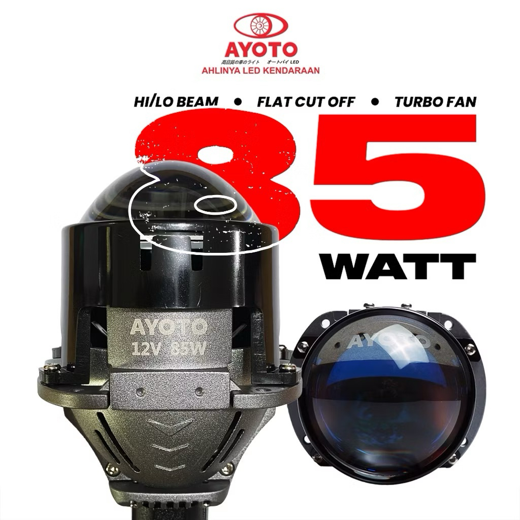 NEW SUPER TERANG PROJECTOR BILED AYOTO BLUE LENS 2.5 INCH 85WATT HI-LO FLAT CUT OFF 6000K TURBO FAN LED CHIP UPGRADED