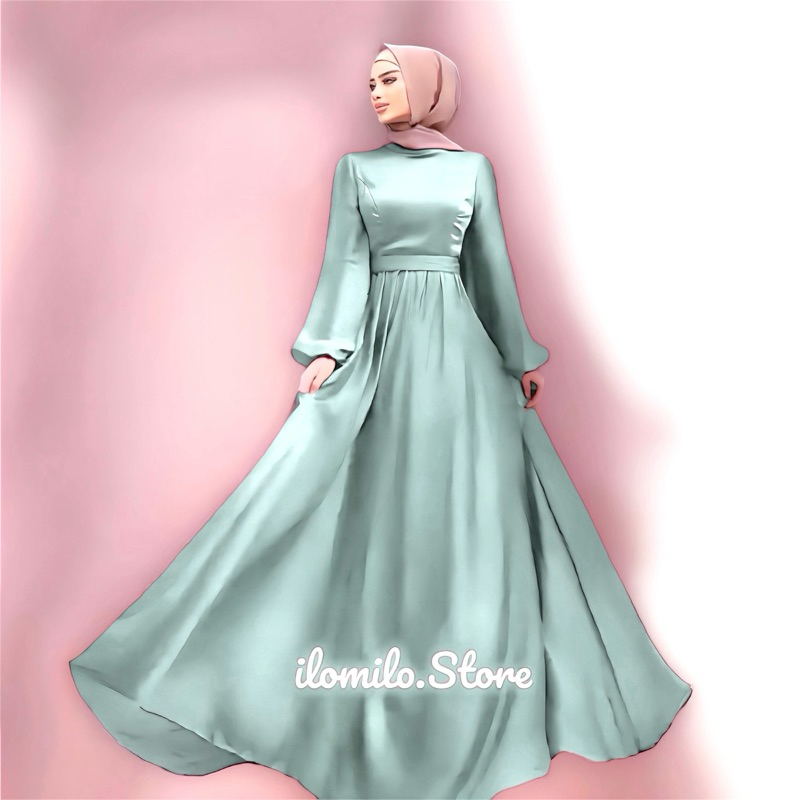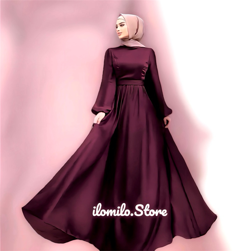 Dress elegan mewah-free bross mewaah, prewed, bridesmaids, gaun pesta, viral, gamis kondangan, lengan balon, wisuda, nikahan, rok mayung, formal, dres satin shimmer slik premium, murah simpel kekinian, baju lebaran, hari raya, idul fitri, Ramadahan 2026