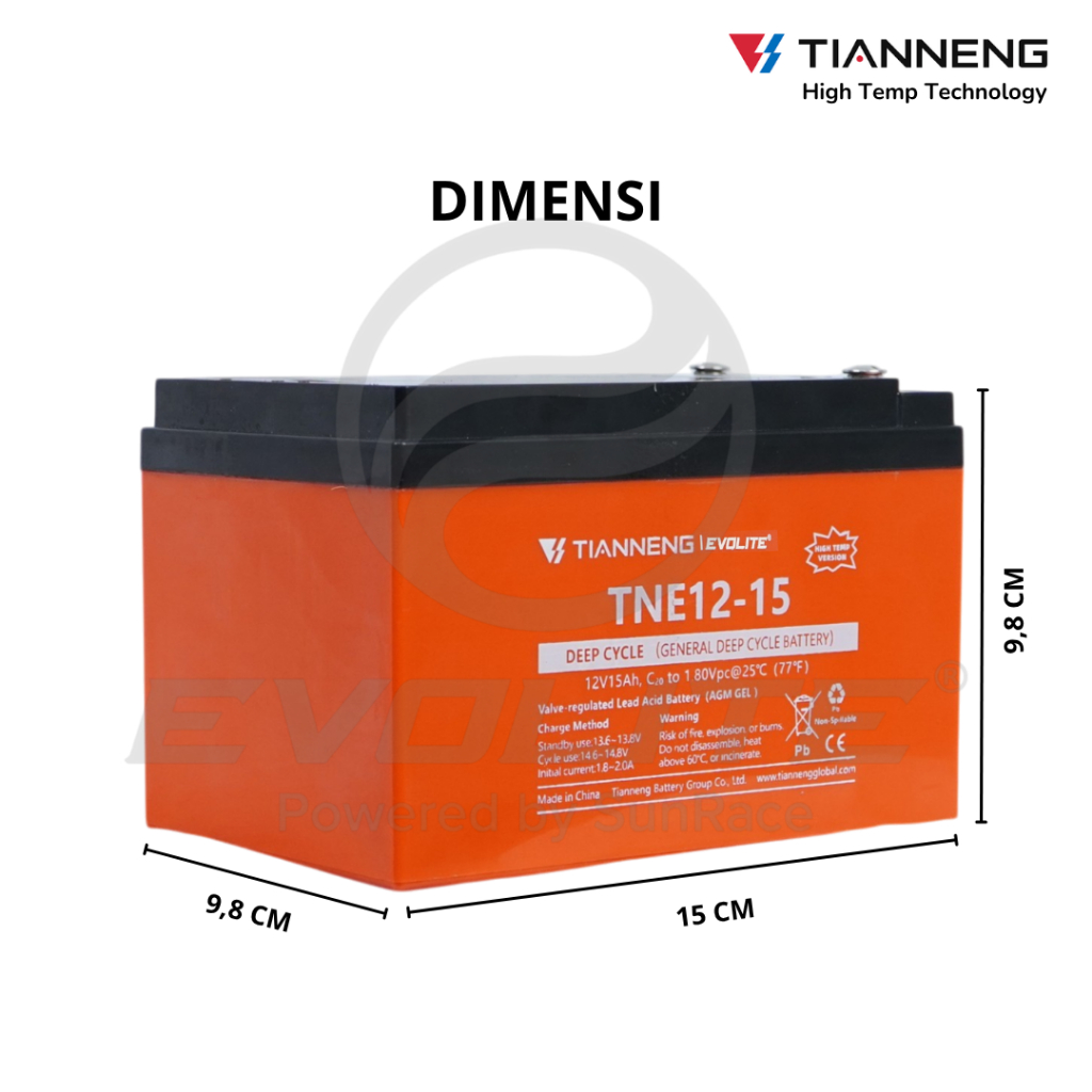 Baterai Aki Premium Tianneng 36V 15AH High Temperature Deep Cycle Sepeda Listrik Isi 3 Pcs