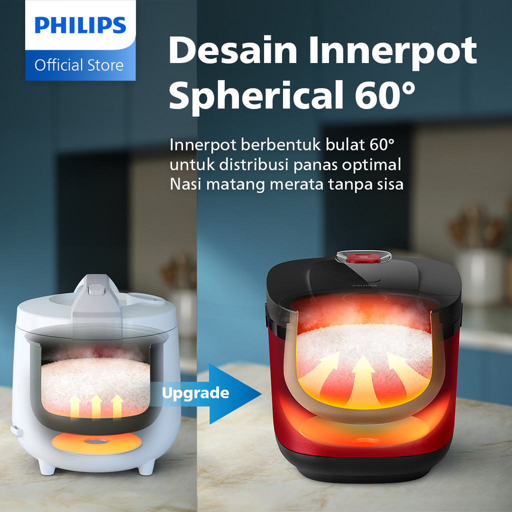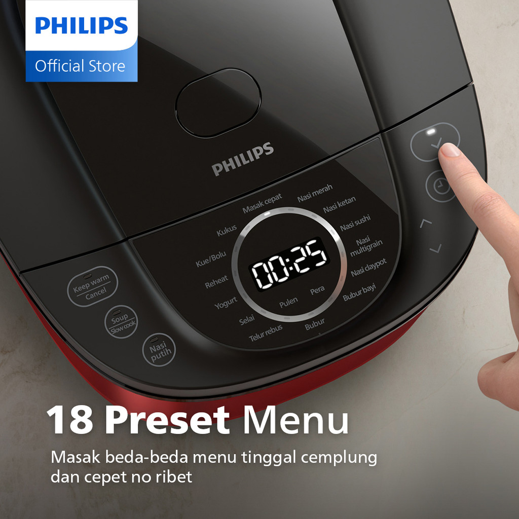 Philips Digital Rice Cooker Magicom 1.8 L - 3000 Digital Series HD4812/30 - Merah - 18 Menu Masak - Anti lengket - FreshDefense Technology - 400 Watt